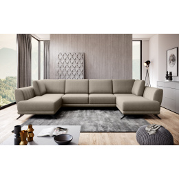 Rohová pohovka ve tvaru U Larco s funkcí spaní - elegantní a moderní kus obývacího nábytku během dne; plnohodnotná, pohodlná postel v noci. Po rozložení poskytuje roh spací plochu o rozměrech: 320 x 124 centimetrů. Larco je velmi snadné rozložit, protože je vybaveno automatickým systémem DL. Provoz tohoto jednoduchého mechanismu spočívá v rozšíření jedné části rohu a následném umístění opěradel k vytvoření dvojité spací plochy. Kromě toho má tento kus nábytku také úložný prostor na lůžkoviny, což šetří místo ve skříni. Kromě toho je rohová sedačka Larco dostatečně prostorná, aby si na ní našel místo každý člen domácnosti, protože její rozměry jsou: 362 x 191 x 90 centimetrů. Co víc, roh Larco je poutavý a není jen neuvěřitelně pohodlný, ale také krásně drží svůj tvar. To je způsobeno vyplněním sedadla vysoce elastickou HR pěnou, která je odolná vůči deformaci a má schopnost znovu získat svůj původní tvar. Navíc se HR pěna přizpůsobuje zarovnání těla, takže je opravdu velmi pohodlná. Rohová sedačka Larco má dekorativní prošívání na vnitřních stranách nábytku a ocelové nohy jsou určitě prvkem, který dodává rohu charakter.