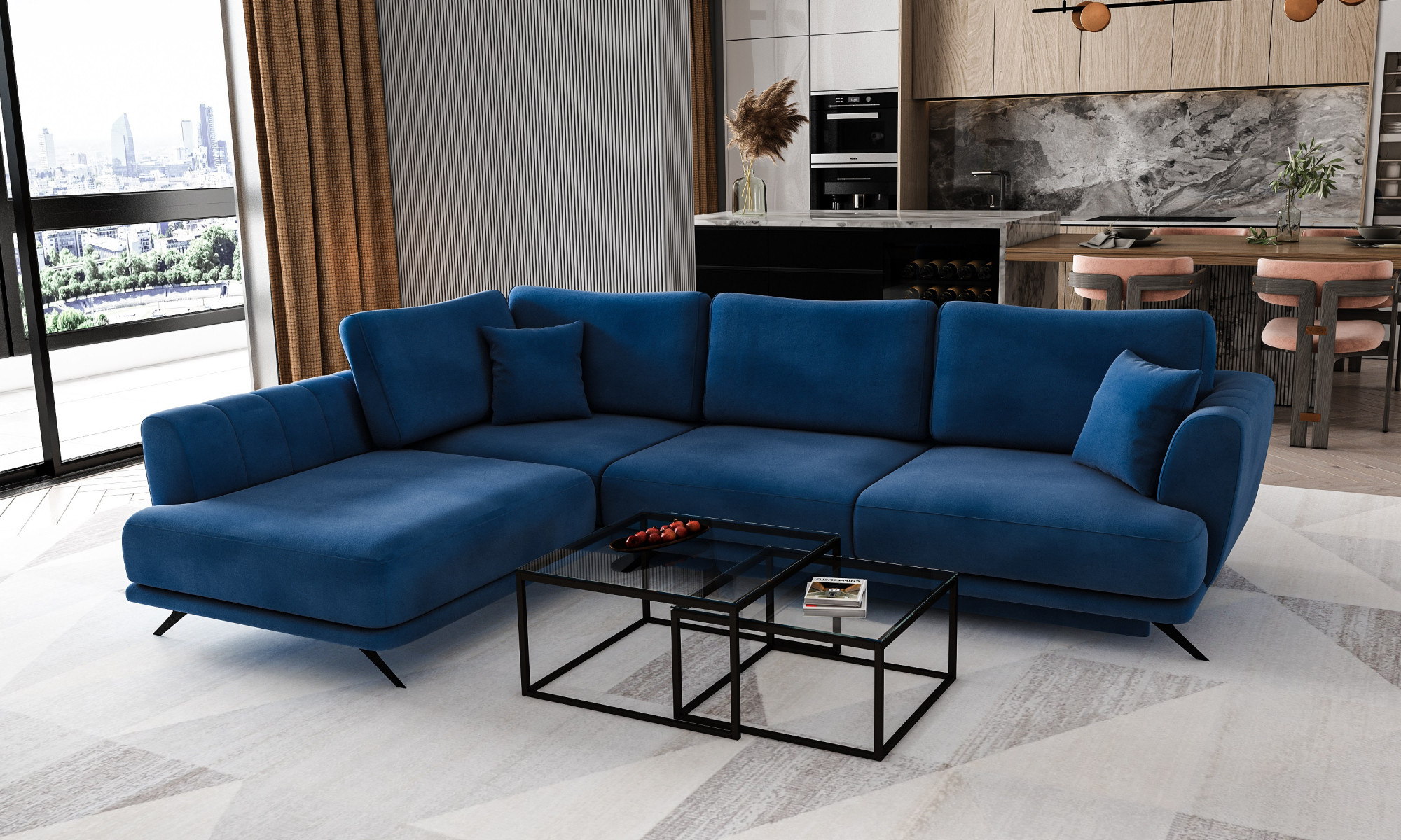 Larde je výjimečně útulná, přesto pohodlná a elegantní rohová pohovka ve tvaru L, měřící 276 x 191 x 90 cm. Jeho charakteristické rysy zahrnují: stabilní konstrukci, tlumený, ale zajímavý design, čalouněné opěradlo, velké polštáře, stylové nohy, které dodávají celé struktuře lehkost, a hluboké, měkké sedadlo vyrobené z HR pěny. Zaručují také správnou polohu těla při odpočinku a značné pohodlí. Rohová pohovka Larde je multifunkční kus nábytku, protože poskytuje maximální úroveň pohodlí jak během dne, tak v noci. Po rozložení pohovky pomocí intuitivního a jednoduchého mechanismu DL získáme spací plochu o rozměrech 126 x 240 cm a prostorný úložný prostor na ložní prádlo. Larde je kus nábytku, který bude odpovědí na všechny vaše požadavky. Má vše, co potřebujete k dosažení odpočinku na nejvyšší úrovni. Zveme vás, abyste se podívali na naši nabídku.