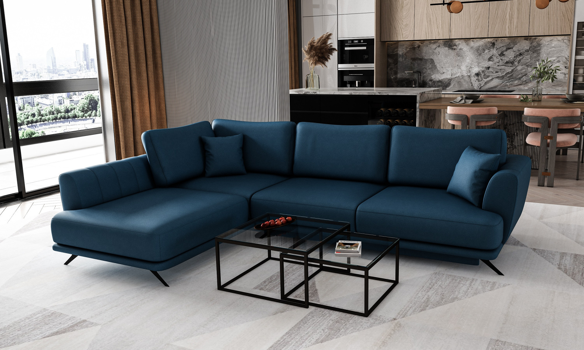 Larde je výjimečně útulná, přesto pohodlná a elegantní rohová pohovka ve tvaru L, měřící 276 x 191 x 90 cm. Jeho charakteristické rysy zahrnují: stabilní konstrukci, tlumený, ale zajímavý design, čalouněné opěradlo, velké polštáře, stylové nohy, které dodávají celé struktuře lehkost, a hluboké, měkké sedadlo vyrobené z HR pěny. Zaručují také správnou polohu těla při odpočinku a značné pohodlí. Rohová pohovka Larde je multifunkční kus nábytku, protože poskytuje maximální úroveň pohodlí jak během dne, tak v noci. Po rozložení pohovky pomocí intuitivního a jednoduchého mechanismu DL získáme spací plochu o rozměrech 126 x 240 cm a prostorný úložný prostor na ložní prádlo. Larde je kus nábytku, který bude odpovědí na všechny vaše požadavky. Má vše, co potřebujete k dosažení odpočinku na nejvyšší úrovni. Zveme vás, abyste se podívali na naši nabídku.