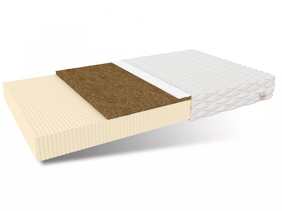 Jádro matrace TORO tvoří kvalitní latexová pěna. Latex je vysoce elastický, trvanlivý a odolný proti opotřebení, takže jej lze používat po mnoho let bez viditelných změn jeho struktury a vlastností. Perforovaná struktura matrace zajišťuje účinné větrání během spánku. Při každém otočení nebo pohybu se latexová vrstva stlačuje a rozpíná, čímž vznikají vnitřní kanálky, kterými se přenáší vzduch. Jedná se o velmi hygienický výrobek. Má široké spektrum antialergických vlastností díky omezení růstu plísní, roztočů a hub, a proto se doporučuje pro alergiky.kokosová vložka použitá v matraci je 100% ekologická surovina, která se získává ze skořápek koksových ořechů. Přírodní vlákna spojená během výrobního procesu vytvářejí tuhou a vzdušnou strukturu, která matraci zpevňuje. Je vynikající bariérou proti plísním a roztočům.specifikace: tvrdost: H2 středně měkká; H3 středně tvrdá, tloušťka: 12 cm. Složení: užitná plocha: oboustranná .