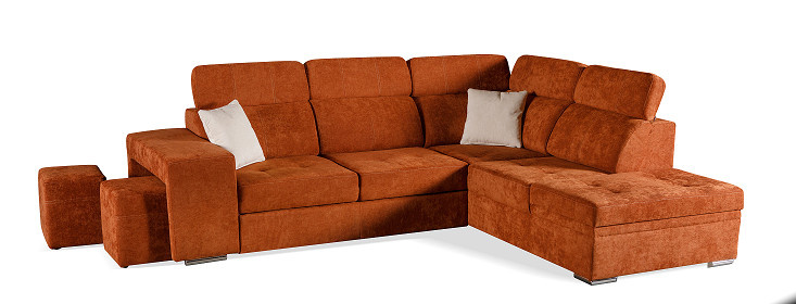 LAURA-PRAVÁ rohová sedací souprava , látka TERACOTA Rosario 472 /polštářky Rosario 451 bílá káva(LENA/VIANA =2balíky )kolekce "MP" (K250) NOVINKA