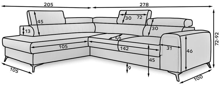 Objevte dokonalou kombinaci elegance, komfortu a praktičnosti s naší rohovou sedací soupravou LAURENCE. Tato stylová sedací souprava je navržena tak, aby se stala středobodem vašeho obývacího pokoje a poskytla vám maximální pohodlí a funkčnost.