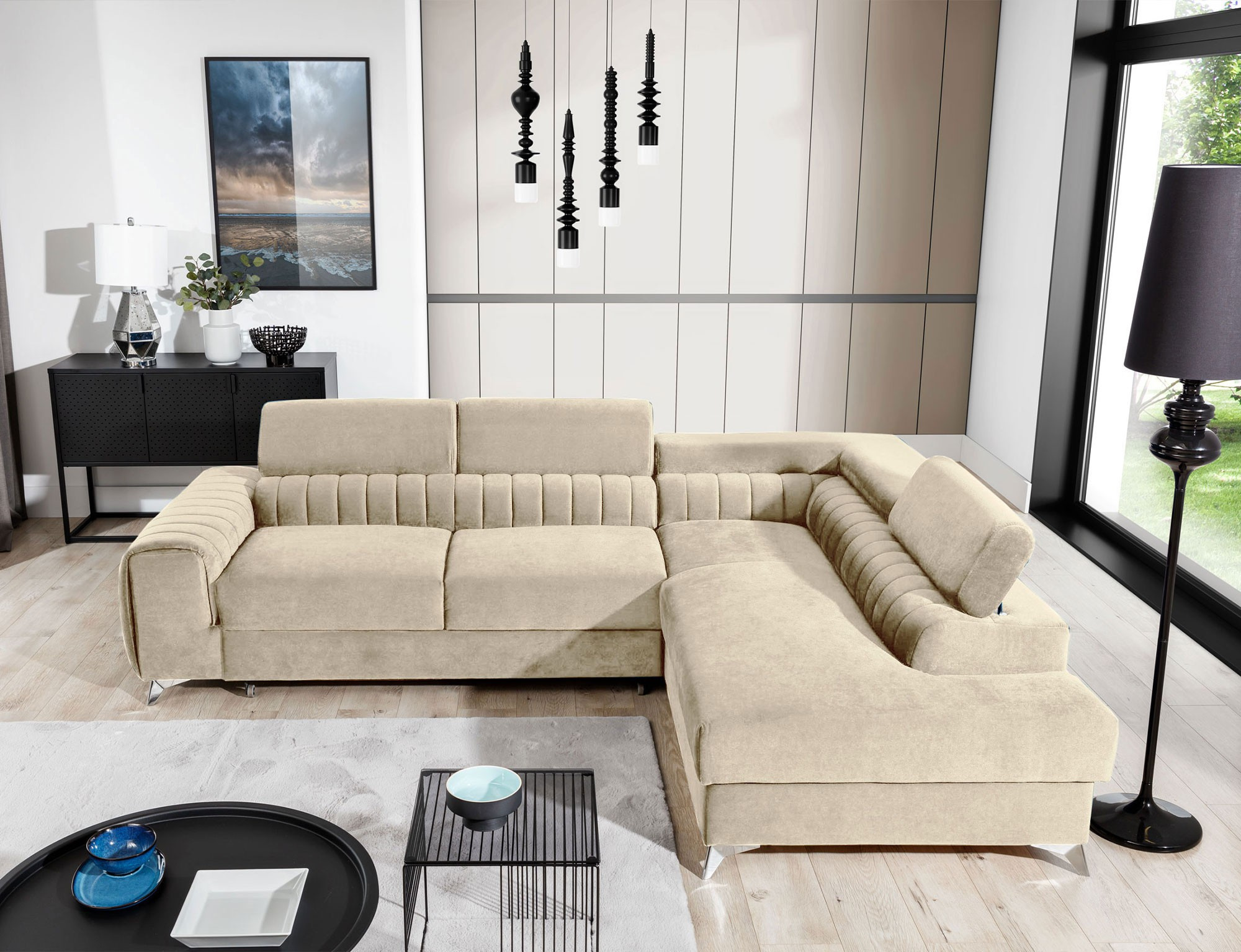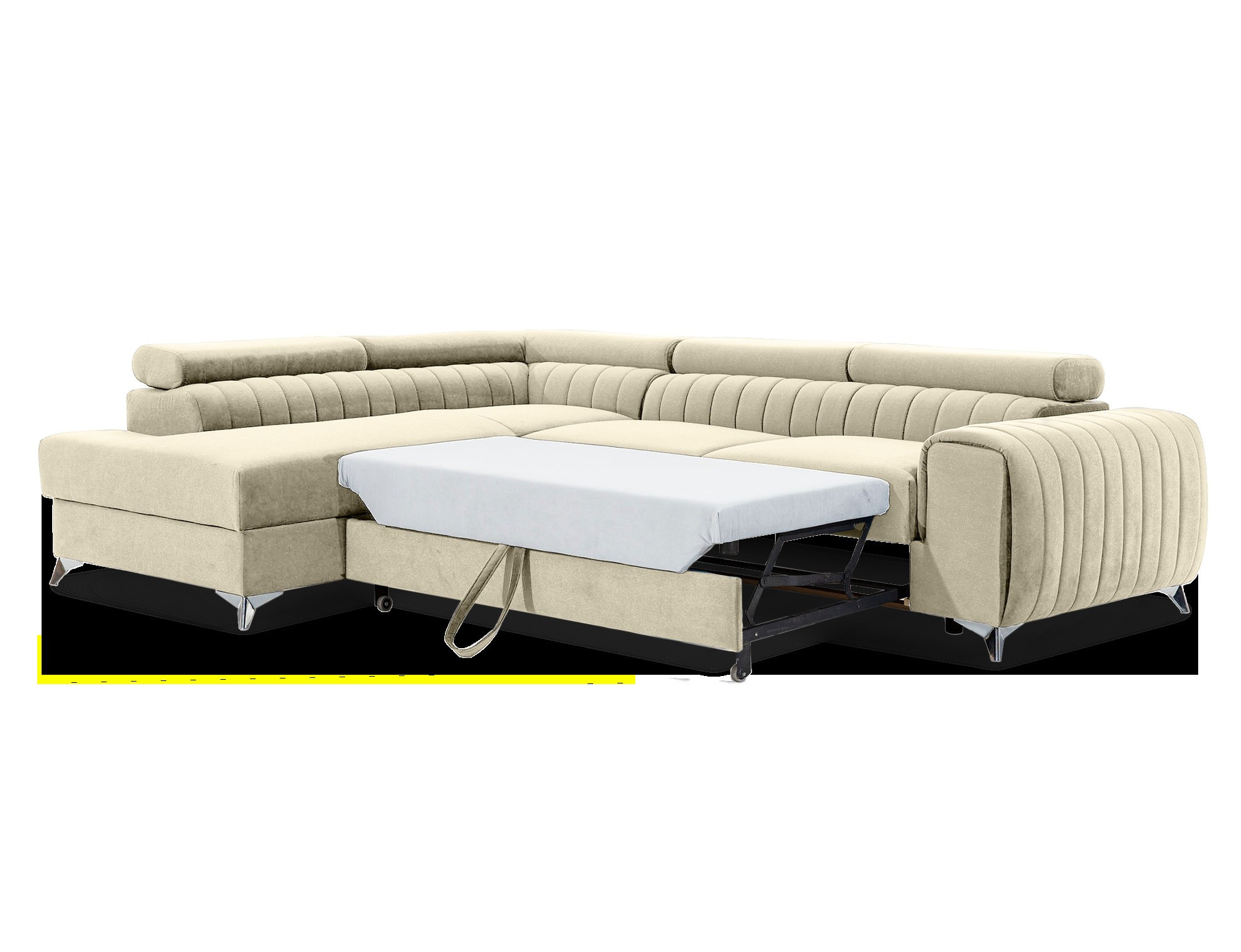 Laurence je stylová, funkční a především elegantní rohová pohovka navržená pro náročné znalce pohodlí. Vysoká úroveň relaxace je umocněna nastavitelnými, vysokými opěrkami hlavy a širokým sedadlem. Kus, měřící 278 x 205 x 92 cm, je vyroben z pružin typu B, pěny T30 a HR pěny, což zajišťuje nejvyšší pohodlí pro každodenní použití jako pohovka během dne a jako postel po setmění, díky mechanismu ve stylu delfína, který činí Laurence vhodným i pro noční odpočinek. Rohová pohovka ve tvaru L je vybavena funkcí spaní s plochou 123 x 193 cm. Navíc obsahuje prostorný úložný prostor na ložní prádlo. S elegantním prošíváním a 9 cm ocelovými nohami si pohovka zachovává moderní vzhled. Produkt je dostupný ve všech látkách z kolekce Eltap. Pokud hledáte závan čerstvého vzduchu a modernistický design, Laurence bude jistě tou správnou volbou pro vás.