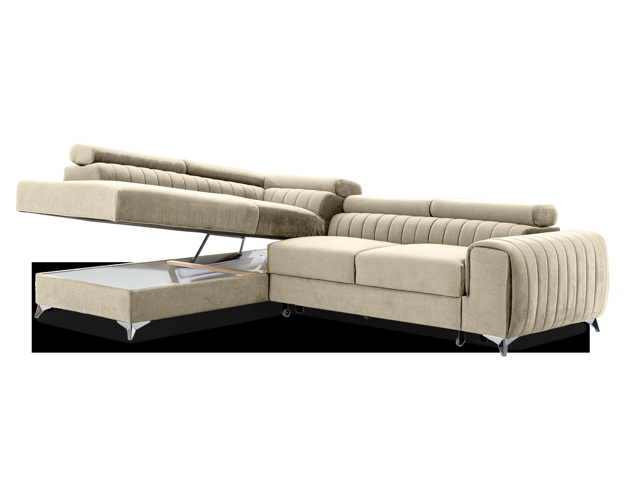 Laurence je stylová, funkční a především elegantní rohová pohovka navržená pro náročné znalce pohodlí. Vysoká úroveň relaxace je umocněna nastavitelnými, vysokými opěrkami hlavy a širokým sedadlem. Kus, měřící 278 x 205 x 92 cm, je vyroben z pružin typu B, pěny T30 a HR pěny, což zajišťuje nejvyšší pohodlí pro každodenní použití jako pohovka během dne a jako postel po setmění, díky mechanismu ve stylu delfína, který činí Laurence vhodným i pro noční odpočinek. Rohová pohovka ve tvaru L je vybavena funkcí spaní s plochou 123 x 193 cm. Navíc obsahuje prostorný úložný prostor na ložní prádlo. S elegantním prošíváním a 9 cm ocelovými nohami si pohovka zachovává moderní vzhled. Produkt je dostupný ve všech látkách z kolekce Eltap. Pokud hledáte závan čerstvého vzduchu a modernistický design, Laurence bude jistě tou správnou volbou pro vás.