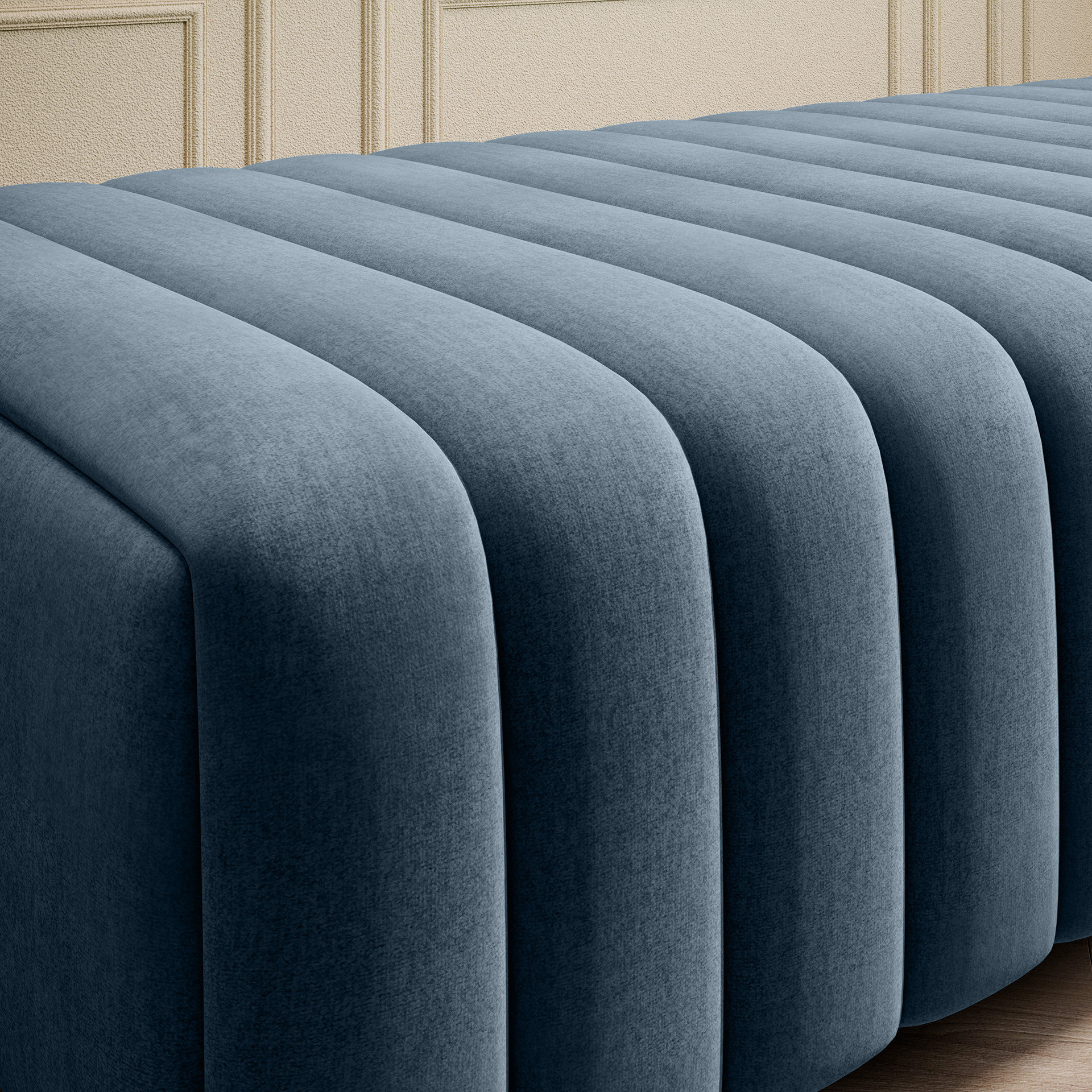 Jeho nízká výška sedu 36 cm je ideální pro pohodlné sezení, zatímco šířka 132 cm a hloubka 64 cm poskytují dostatek prostoru pro relaxaci. Taburet může sloužit jako místo pro odpočinek nohou, přídavné sezení pro hosty nebo dokonce jako stylový stolek pro odložení knihy či šálku kávy.