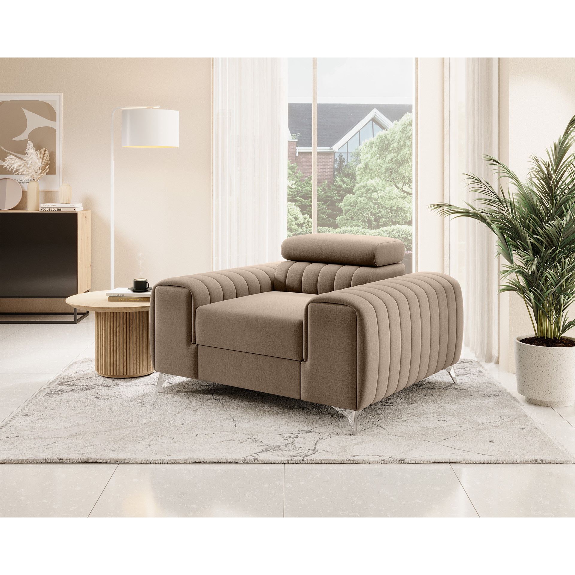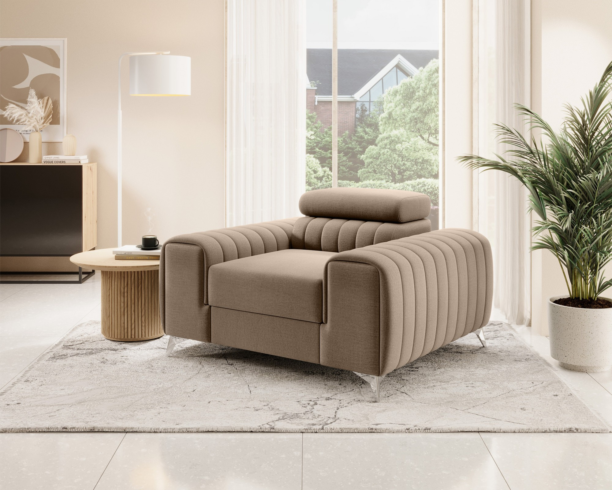 Křeslo LAURENCE je ztělesněním moderního designu, který se snadno začlení do jakéhokoli interiéru. Jeho elegantní linie a sofistikovaný vzhled z něj činí ideální volbu pro ty, kteří hledají stylový a zároveň funkční nábytek. S šířkou 125 cm, výškou 87 cm a hloubkou 97 cm nabízí dostatek prostoru pro pohodlné sezení.