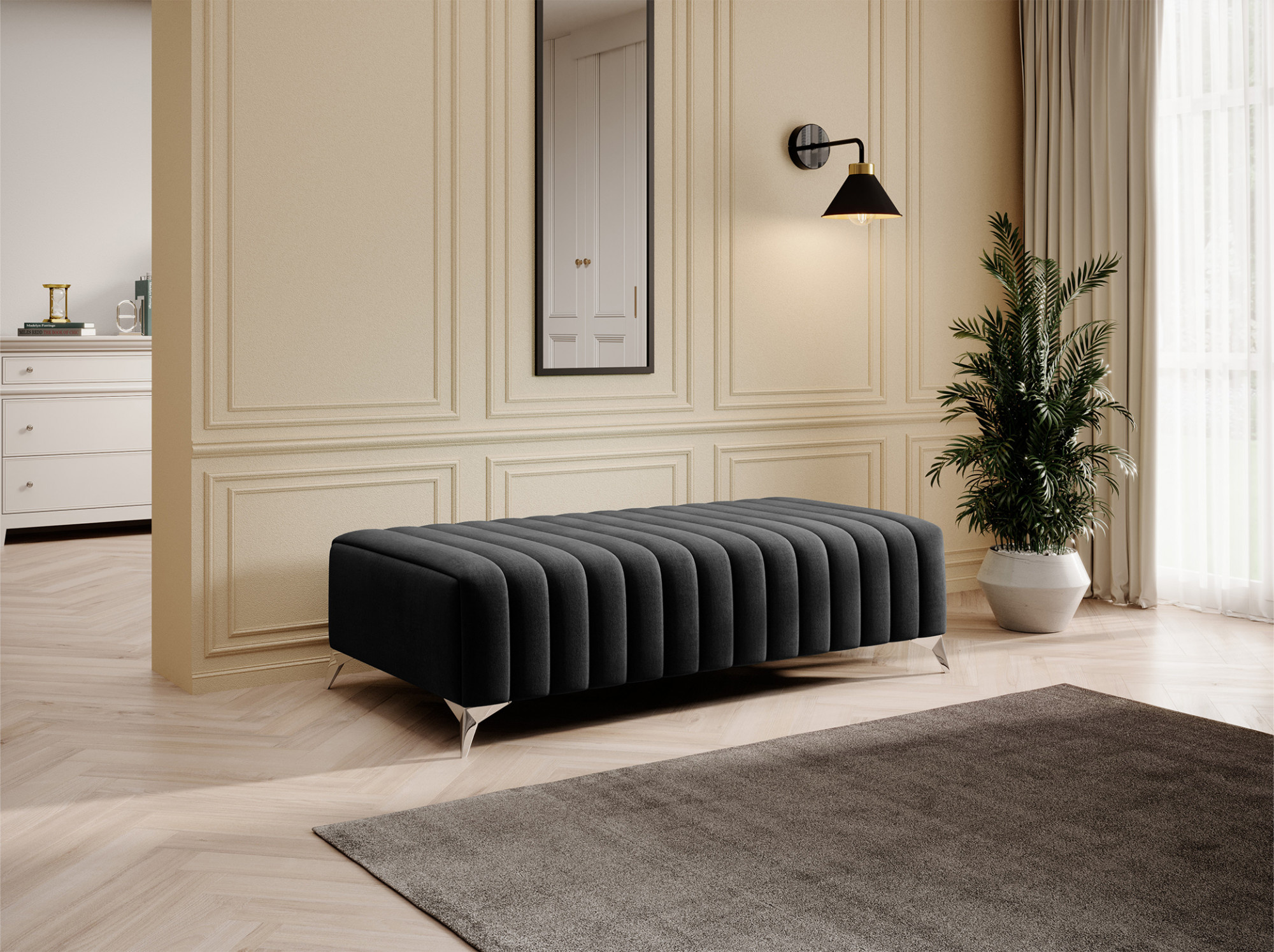 Taburet LAURENCE je navržen tak, aby poskytoval maximální pohodlí a zároveň sloužil jako stylový doplněk vašeho obývacího pokoje, ložnice nebo předsíně. Jeho rozměry umožňují snadné umístění do různých prostor, ať už jako samostatný prvek nebo jako součást většího nábytkového setu.