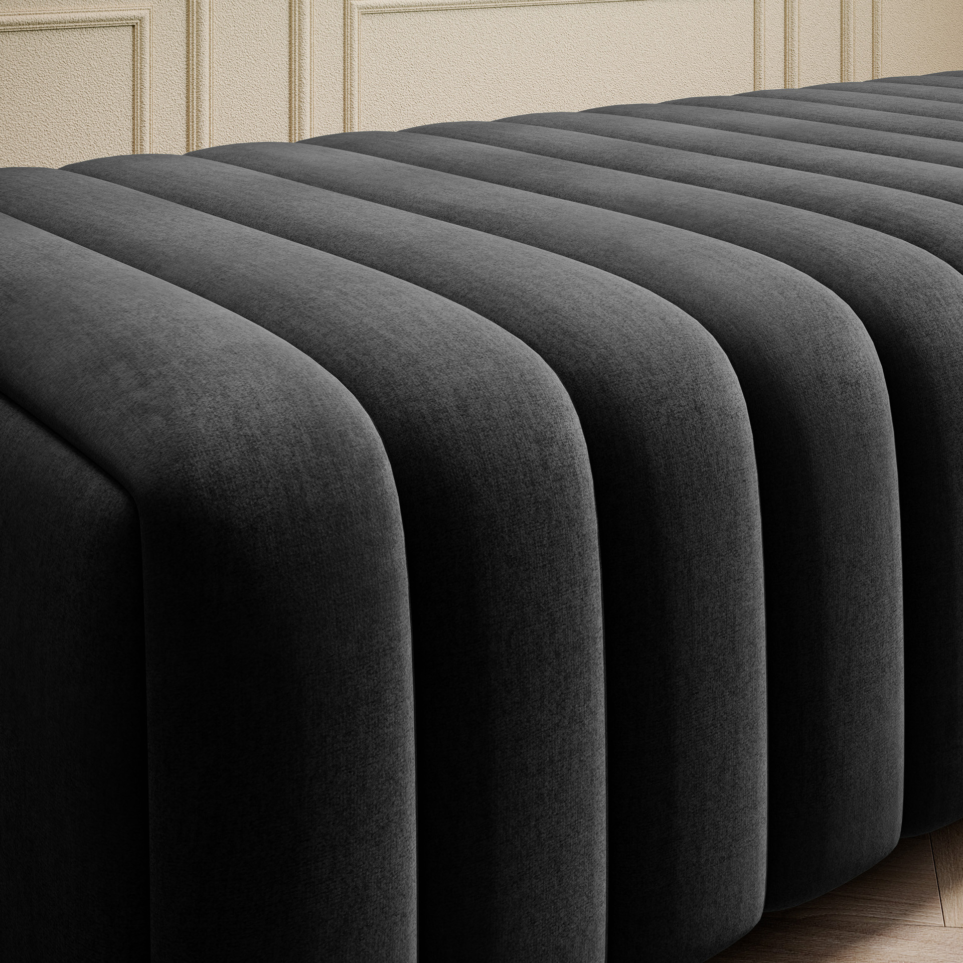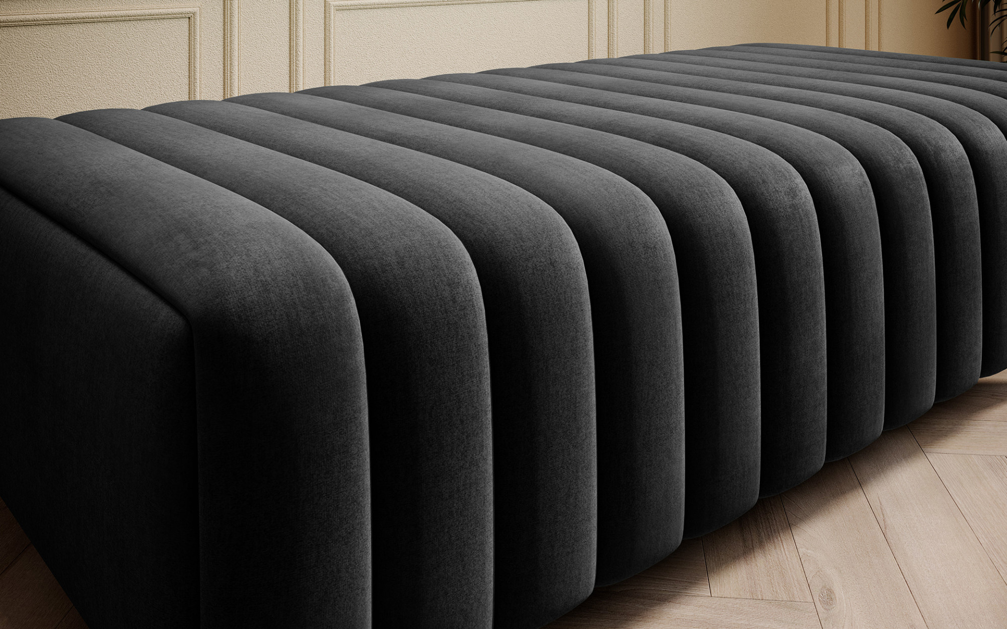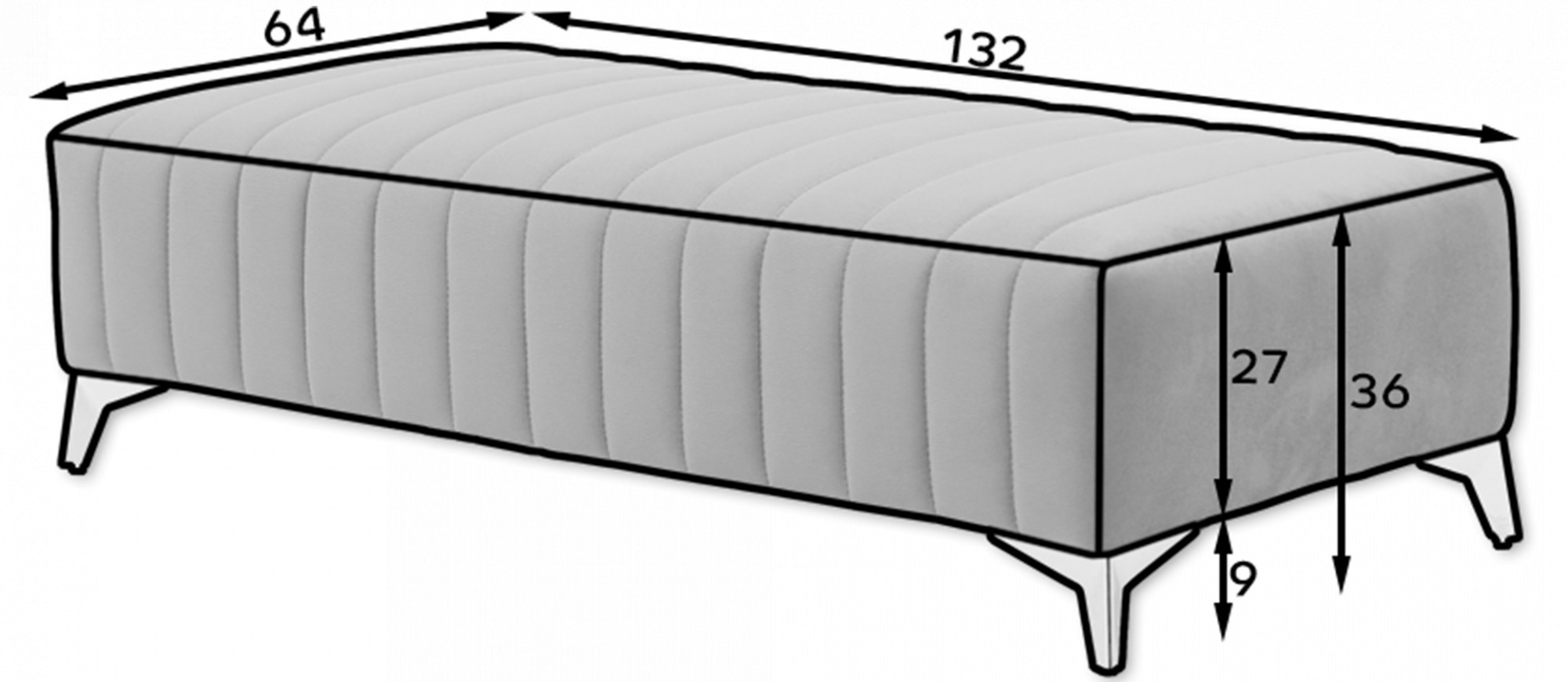 Jeho nízká výška sedu 36 cm je ideální pro pohodlné sezení, zatímco šířka 132 cm a hloubka 64 cm poskytují dostatek prostoru pro relaxaci. Taburet může sloužit jako místo pro odpočinek nohou, přídavné sezení pro hosty nebo dokonce jako stylový stolek pro odložení knihy či šálku kávy.