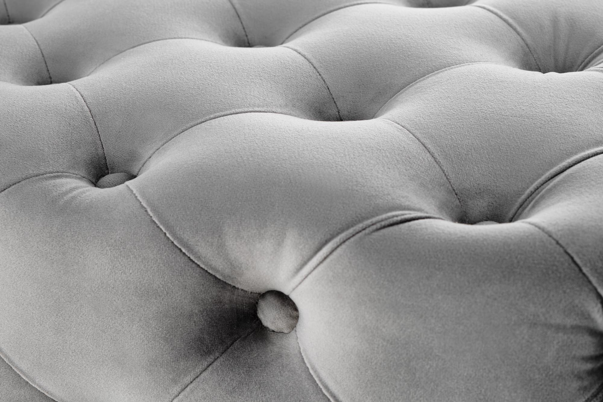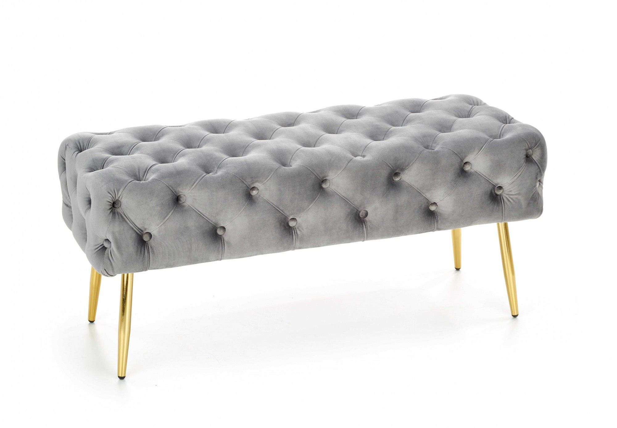 rozměry: 100/45/40 cm, materiál: látka - samet / chromovaná ocel, barva: čalounění - šedá, nohy - zlatá