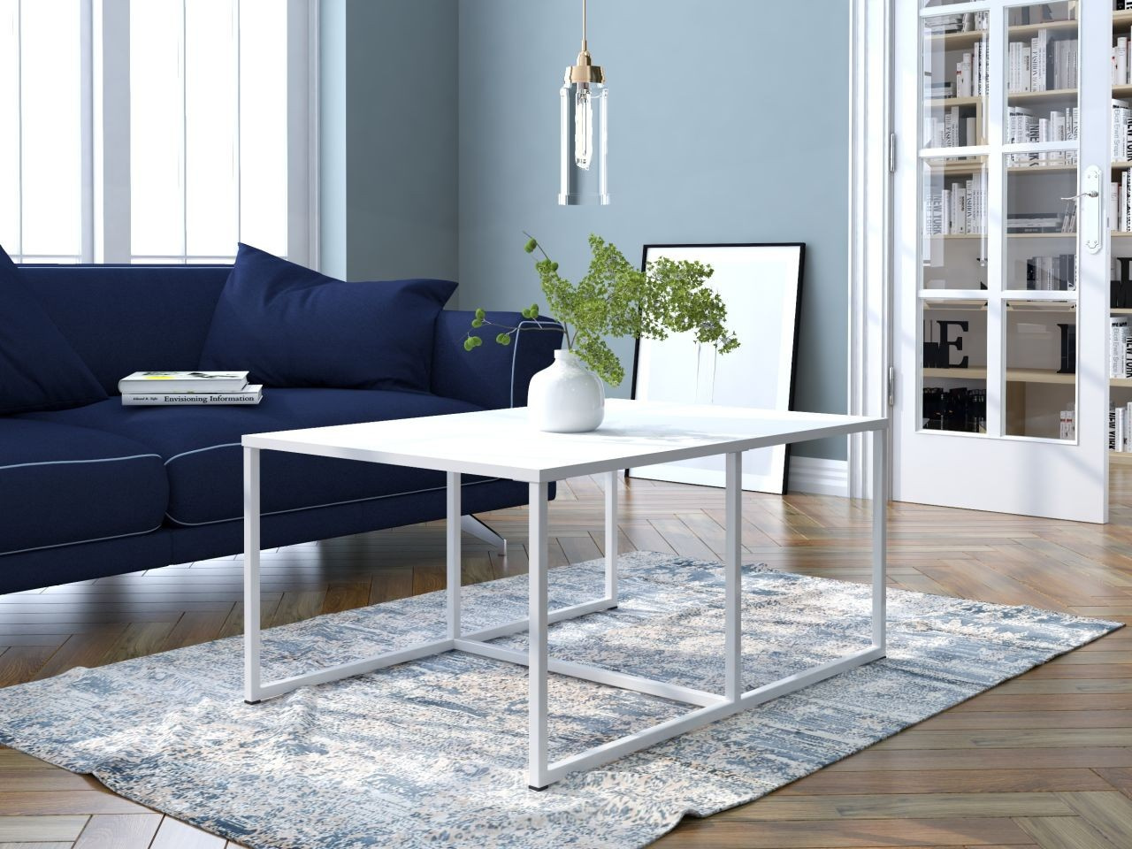 ROZMĚRY: - Hloubka: 67 cm - Šířka: 102 cm - Výška: 46 cm MATERIÁL: - laminovaná dřevotříska 18 mm - kov lakovaný práškovou barvou BARVA: - bílá
