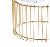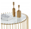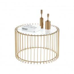 Rozměry: - deska: průměr 60 cm - výška: 39 cm Materiál: - deska: sklo - základna: chrom Barva: - deska: bílý mramor - základna: zlatá