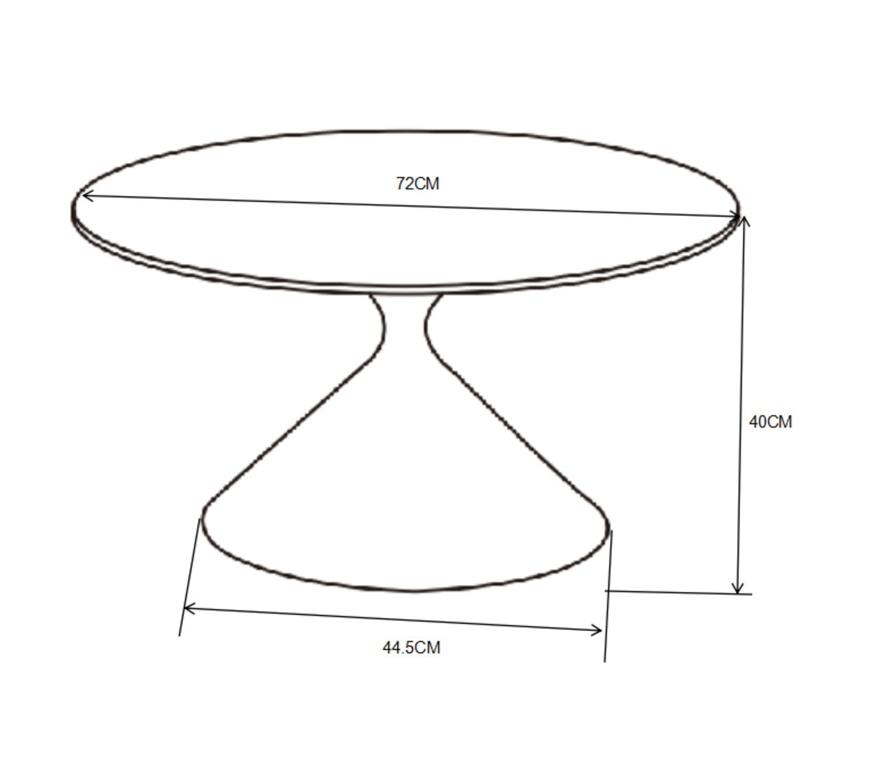 Rozměry: - průměr desky: 72 cm - výška: 41 cm - podrobné rozměry na poslední fotografii Materiál: - deska: keramika - základna: kov s práškovým nástřikem Barva: - deska: bílý mramor - základna: černá