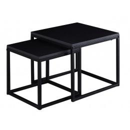 Rozměry: *větší stolek: - deska: 50x50 cm - výška: 43 cm *menší stolek: - deska: 40x40 cm - výška: 38 cm Materiál - deska: dýha - nohy: ocel lakovaná práškovou barvou Barva: - deska: černá - konstrukce: černá