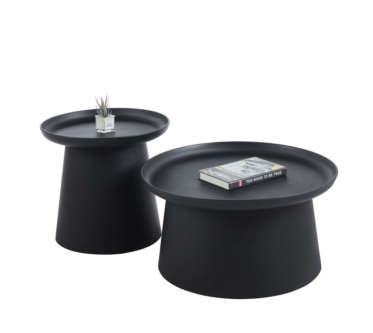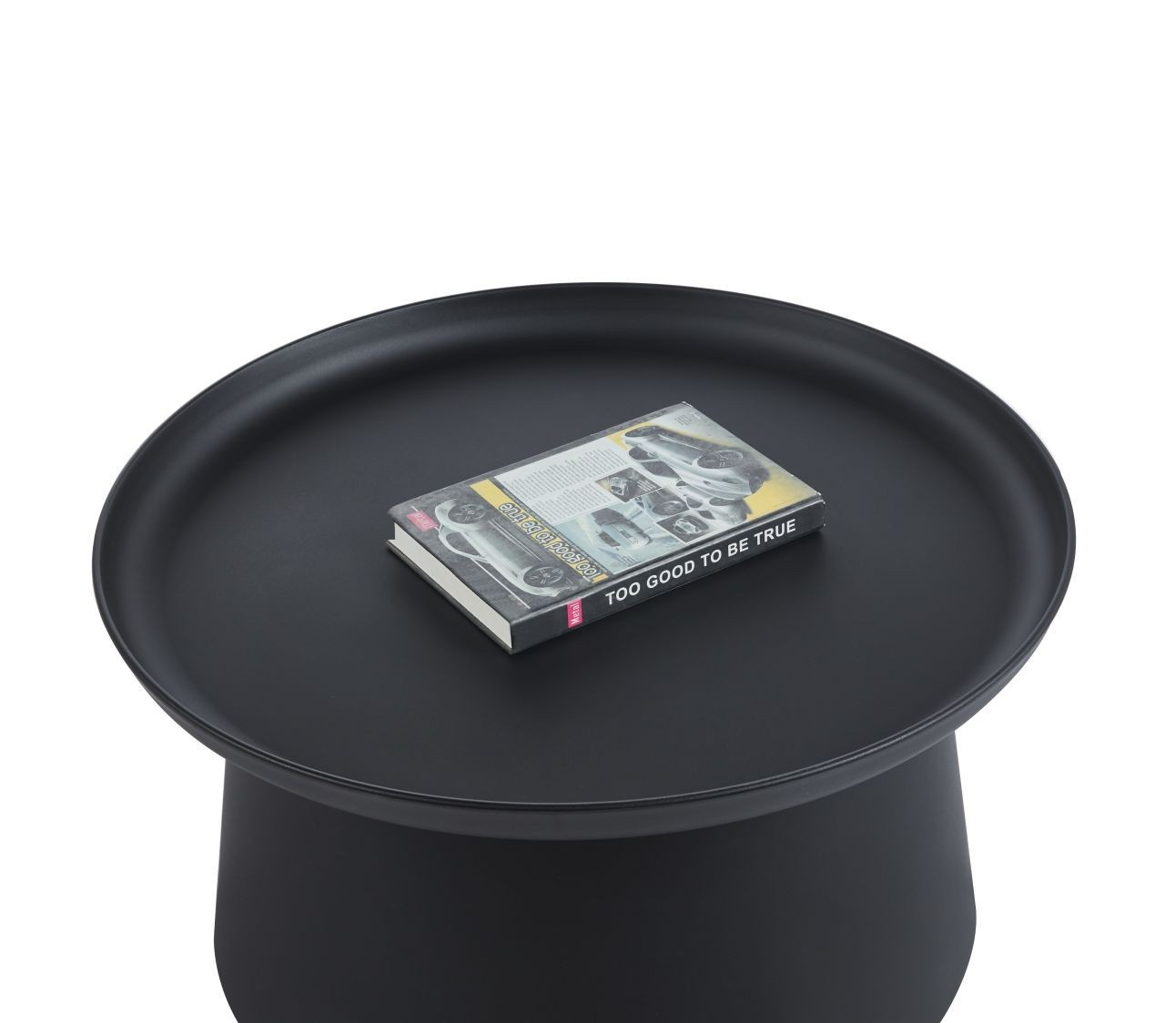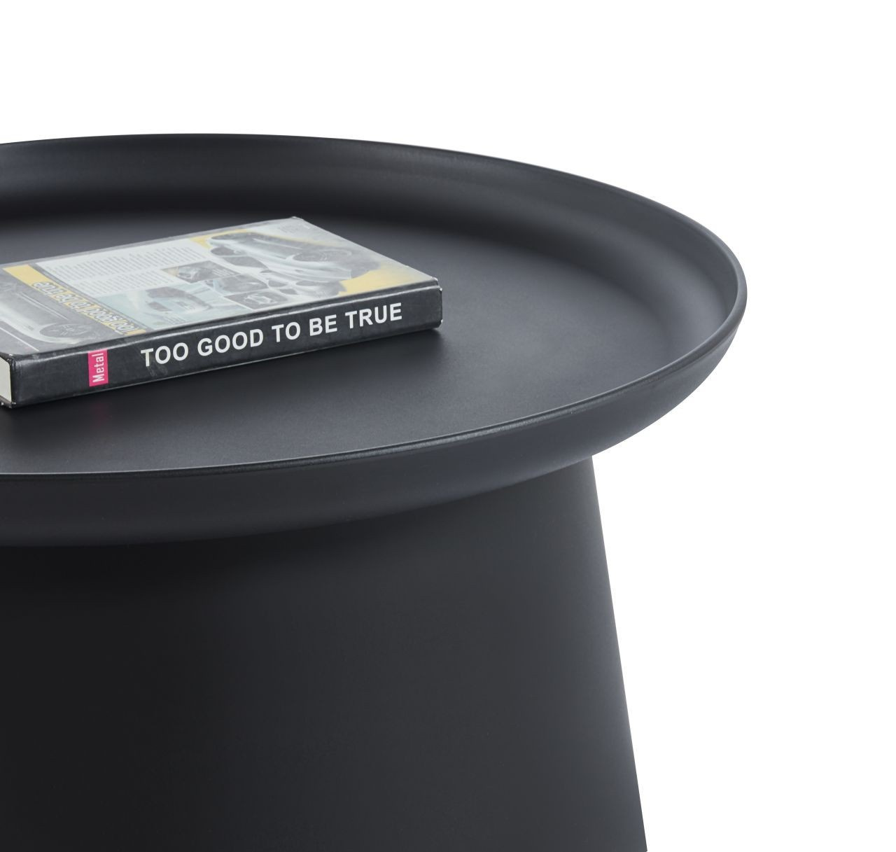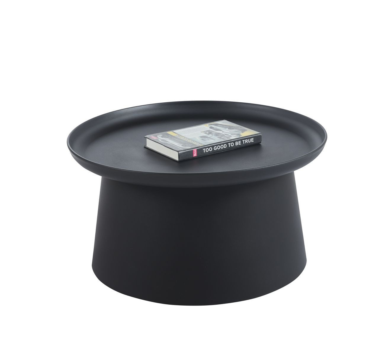 Rozměry: - deska: průměr 70 cm - výška: 35 cm Materiál: - deska + základna: PP plast Barva: - černá