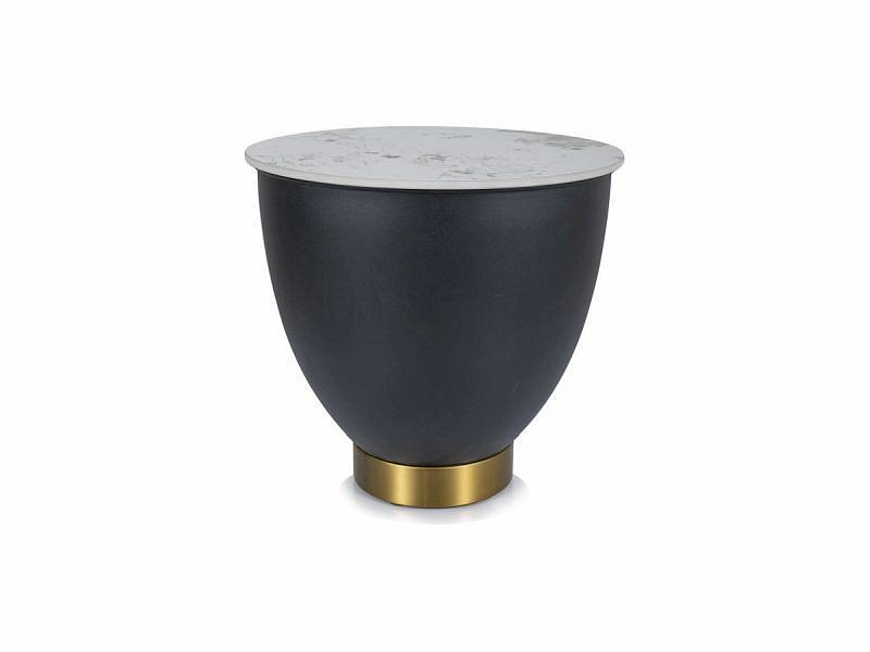 Konferenční stůl CYPRUS B, Efekt bílého mramoru/Černý mat/Zlatá