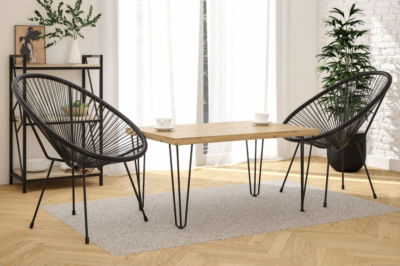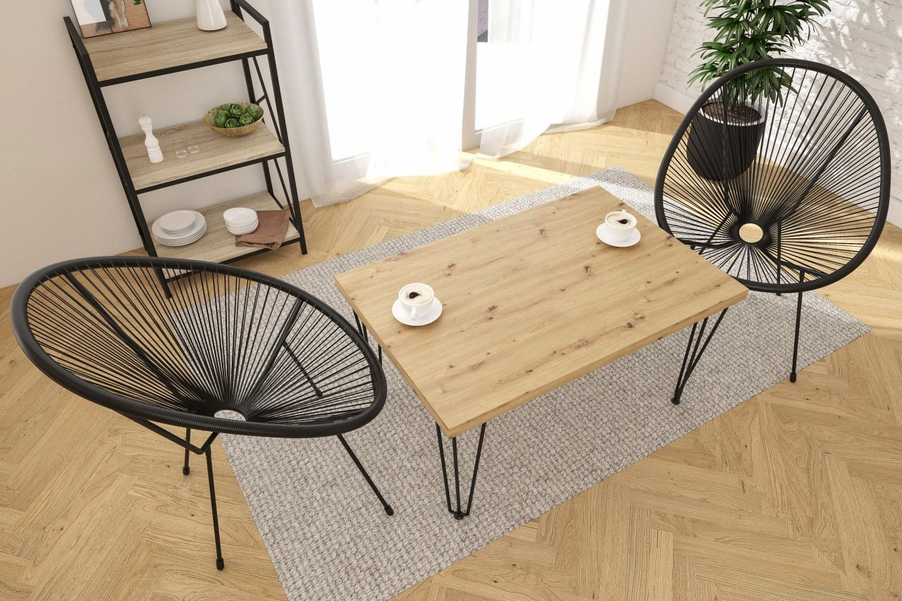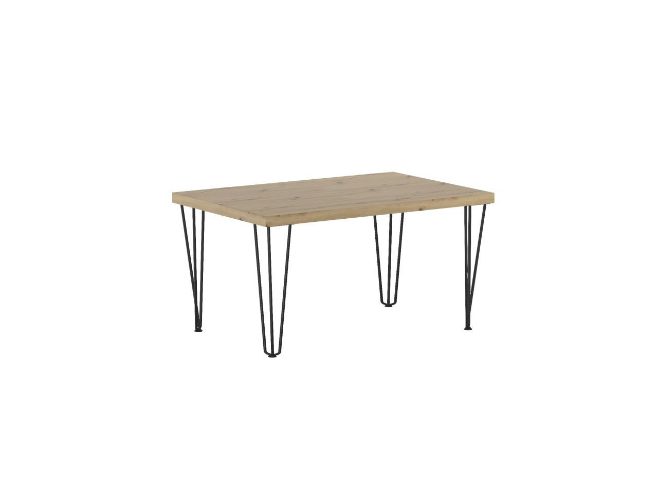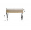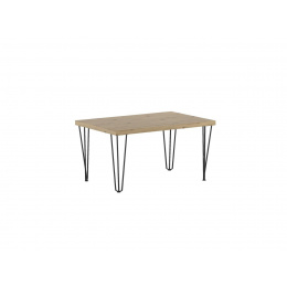 Rozměry: - délka: 101 cm - šířka: 67 cm - výška: 52 cm - tloušťka desky: 3,8 cm Materiál: - deska: laminovaná deska - hrany desky: zakončené ABS plastem - nohy: ocel lakovaná práškovou barvou Barva: - deska: dub artisan - nohy: černá