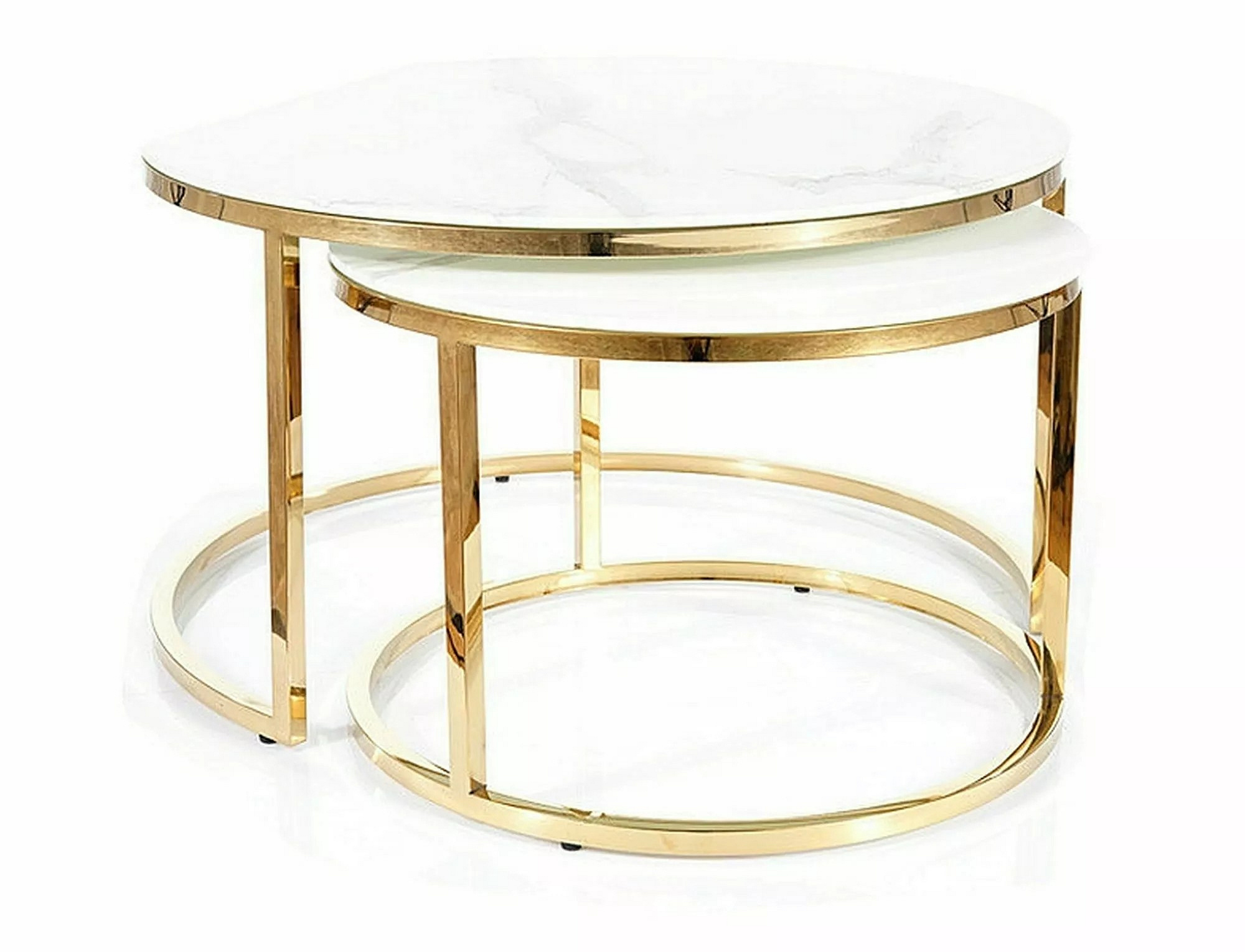 Konferenční stůl MUSE II - set 2 stolů, efekt bílého mramoru/zlatá