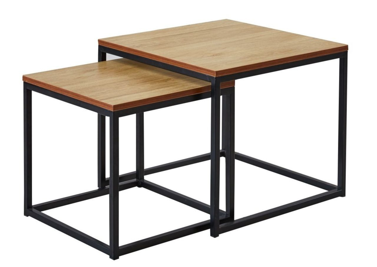 Rozměry: *větší stolek: - deska: 50x50 cm - výška: 43 cm *menší stolek: - deska: 40x40 cm - výška: 38 cm Materiál - deska: MDF (dýha) - nohy: ocel lakovaná práškovou barvou Barva: - deska: přírodní dub - konstrukce: černá