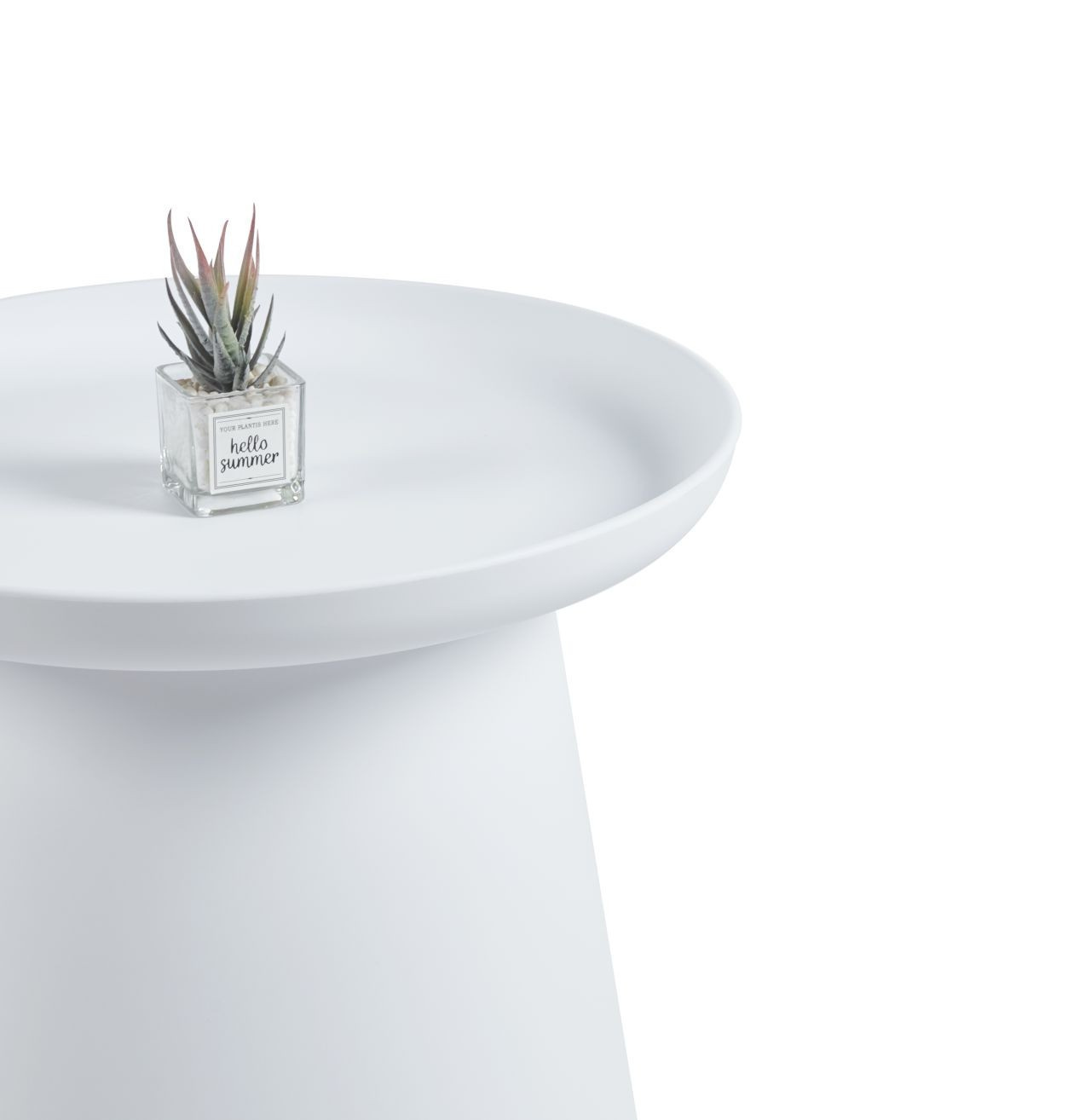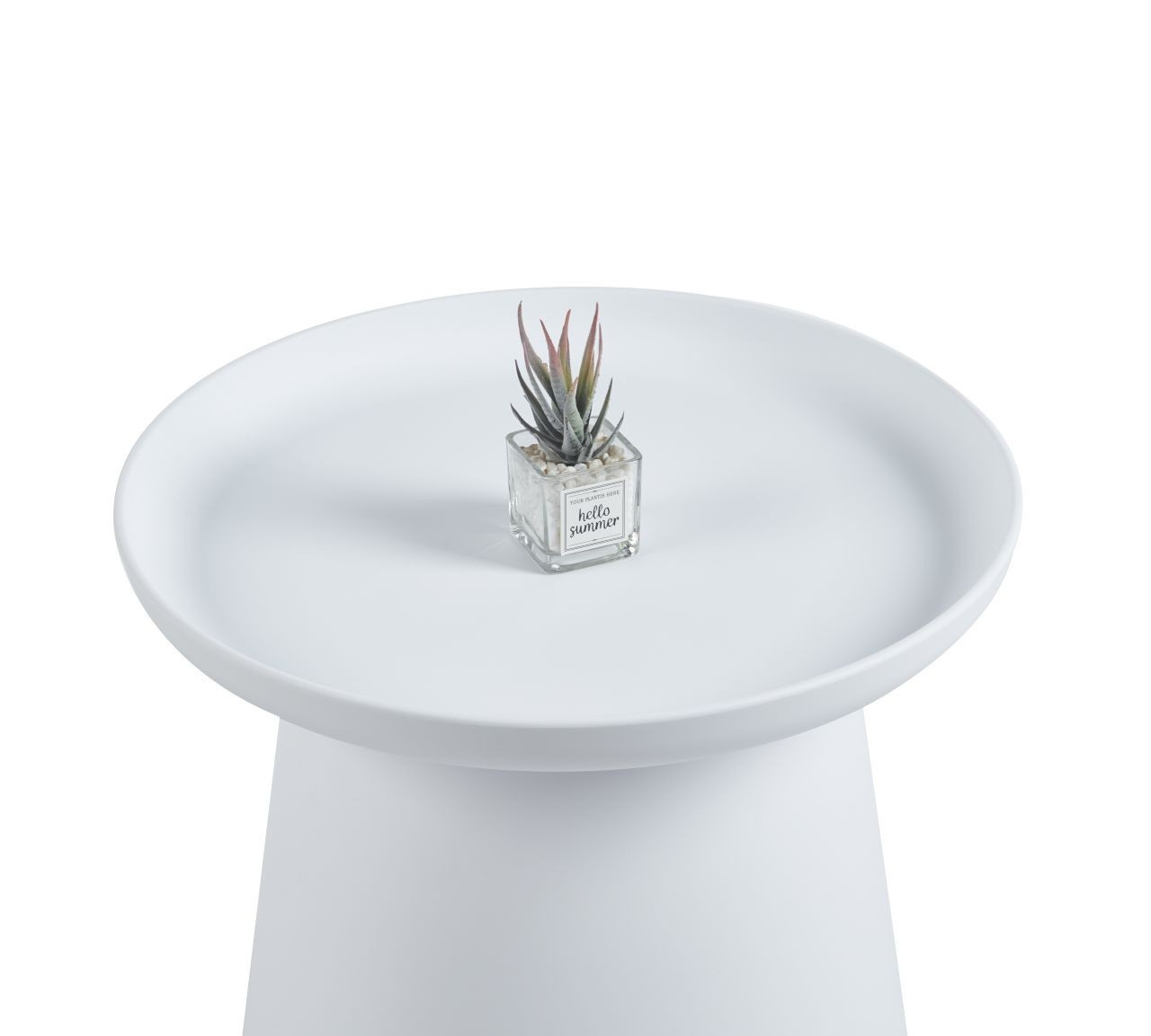 Rozměry: - deska: průměr 50 cm - výška: 45 cm Materiál: - deska + základna: materiál PP Barva: - bílá