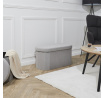 Skládací lavice je ideální nábytek do menší předsíně. Lavička slouží nejen jako sedátko, ale také jako úložný prostor na boty, doplňky, deky nebo polštáře a dokonce i hračky. Díky otevíratelnému sedáku můžeme do pufu schovat předměty, jejichž přítomnost na povrchu není nutná. Skládací lavice byla vyrobena z MDF, čalounické pěny a látky 100% polyester. Skládací základna umožňuje schovat lavičku, když ji dočasně nepotřebujeme používat. Rozměry kartonu: 39,5x14,5x76cm. Max 2 ks v kartonu