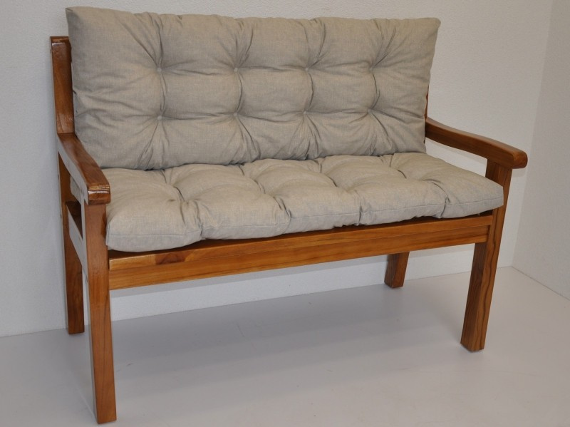 Lavička teaková 150 cm polstr tmavě béžový melír