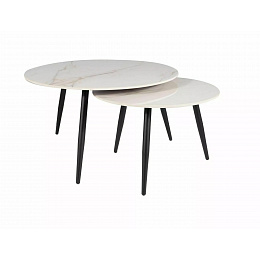 Set konferenčních stolků KORA D, Bílá/černý mat