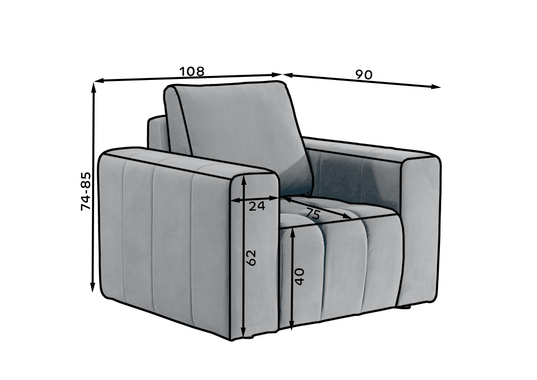 Křeslo Lazaro je jedinečné a stylové křeslo, které bude ideálním kusem nábytku pro váš byt, protože se hodí do všech interiérů různého charakteru. Rozměry 108 x 89 x 85 umožňují, aby se vešel do místností různých velikostí. Sedák - hluboký 75 centimetrů - je vybaven vlnitými pružinami, které jsou kombinací pěny T21 a vysoce elastické pěny HR. Křeslo vyniká díky hlubokému prošívání na sedáku a šití na stranách. Toto je také způsob, jak vytváří koherentní prvek zajímavé kompozice. Pohodlí našeho nábytku Lazaro - je také ovlivněno vysokými a širokými opěrkami rukou, které jsou k dispozici v kombinaci s velkým polštářem na opěradle. Další výhodou tohoto křesla je možnost kombinovat dostupné varianty a vytvořit z nich celou sadu s pohovkou a taburetem. Hledáte chybějící kousek skládačky? Není třeba pokračovat dál. V Lazaro máme všechno.