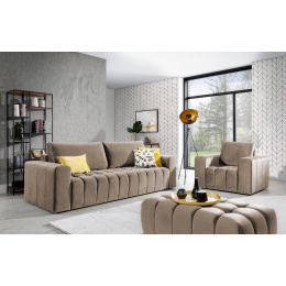 Sada nábytku Lazaro je stylový kousek, který vylepší zážitek z vkusného interiérového designu, ovlivňující jak estetické pocity, tak maximální pohodlí a komfort. Taková sada udělá z trávení času doma skutečné potěšení. Naše nábytek jistě upoutá pozornost stylovým prošíváním na sedáku a šitím na stranách. Charakteristické rysy naší pohovky, která měří 245 x 97 x 85 cm, zahrnují: originální sedák, vyplněný kombinací pěny T25 a HR pěny, tvarované opěradlo, široké područky a širokou škálu barevných možností při výběru nábytku. Je také třeba poznamenat, že pohovku lze velmi snadno a rychle přeměnit na spací plochu o rozměrech 195 x 125 cm. Je doplněn úložným prostorem na lůžkoviny, který je podporován automatickým systémem rozkládání DL. Nelze také nezmínit křeslo a taburet. Rozměry prvního: 108 x 89 x 85, stejně jako druhého: 102 x 64 x 40 cm, umožňují jejich umístění do místností různé velikosti. Za zmínku také stojí, že naše puf je multifunkční, protože se může proměnit v další sedací plochu, pohodlnou opěrku nohou nebo stůl. Pohodlná sedadla jsou vyrobena z vlnité pružiny a pěny HR+T21, takže nejvyšší komfort při používání našeho nábytku je 100% zaručen. Sada Lazaro je ztělesněním dobrého stylu a vkusu. Určitě stojí za to mít to ve svém bytě,