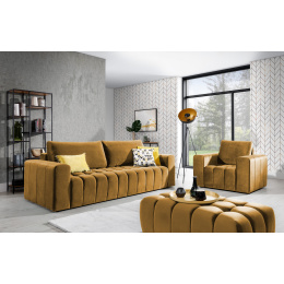 Sada nábytku Lazaro je stylový kousek, který vylepší zážitek z vkusného interiérového designu, ovlivňující jak estetické pocity, tak maximální pohodlí a komfort. Taková sada udělá z trávení času doma skutečné potěšení. Naše nábytek jistě upoutá pozornost stylovým prošíváním na sedáku a šitím na stranách. Charakteristické rysy naší pohovky, která měří 245 x 97 x 85 cm, zahrnují: originální sedák, vyplněný kombinací pěny T25 a HR pěny, tvarované opěradlo, široké područky a širokou škálu barevných možností při výběru nábytku. Je také třeba poznamenat, že pohovku lze velmi snadno a rychle přeměnit na spací plochu o rozměrech 195 x 125 cm. Je doplněn úložným prostorem na lůžkoviny, který je podporován automatickým systémem rozkládání DL. Nelze také nezmínit křeslo a taburet. Rozměry prvního: 108 x 89 x 85, stejně jako druhého: 102 x 64 x 40 cm, umožňují jejich umístění do místností různé velikosti. Za zmínku také stojí, že naše puf je multifunkční, protože se může proměnit v další sedací plochu, pohodlnou opěrku nohou nebo stůl. Pohodlná sedadla jsou vyrobena z vlnité pružiny a pěny HR+T21, takže nejvyšší komfort při používání našeho nábytku je 100% zaručen. Sada Lazaro je ztělesněním dobrého stylu a vkusu. Určitě stojí za to mít to ve svém bytě,