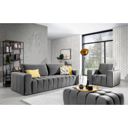 Sada nábytku Lazaro je stylový kousek, který vylepší zážitek z vkusného interiérového designu, ovlivňující jak estetické pocity, tak maximální pohodlí a komfort. Taková sada udělá z trávení času doma skutečné potěšení. Naše nábytek jistě upoutá pozornost stylovým prošíváním na sedáku a šitím na stranách. Charakteristické rysy naší pohovky, která měří 245 x 97 x 85 cm, zahrnují: originální sedák, vyplněný kombinací pěny T25 a HR pěny, tvarované opěradlo, široké područky a širokou škálu barevných možností při výběru nábytku. Je také třeba poznamenat, že pohovku lze velmi snadno a rychle přeměnit na spací plochu o rozměrech 195 x 125 cm. Je doplněn úložným prostorem na lůžkoviny, který je podporován automatickým systémem rozkládání DL. Nelze také nezmínit křeslo a taburet. Rozměry prvního: 108 x 89 x 85, stejně jako druhého: 102 x 64 x 40 cm, umožňují jejich umístění do místností různé velikosti. Za zmínku také stojí, že naše puf je multifunkční, protože se může proměnit v další sedací plochu, pohodlnou opěrku nohou nebo stůl. Pohodlná sedadla jsou vyrobena z vlnité pružiny a pěny HR+T21, takže nejvyšší komfort při používání našeho nábytku je 100% zaručen. Sada Lazaro je ztělesněním dobrého stylu a vkusu. Určitě stojí za to mít to ve svém bytě,
