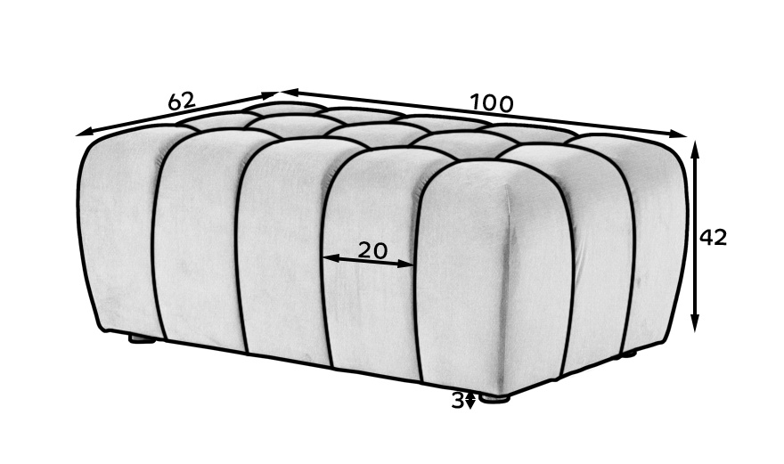 Lazaro je puf s jedinečným designem, který upoutá pozornost každého, kdo dává přednost stylovým obytným prostorám. Jeho rozměry 102 x 64 x 40 cm a lehkost vám umožňují přizpůsobit jeho polohu podle vašich potřeb. Lazaro puf je multifunkční, protože se může proměnit v další místo k sezení, pohodlnou opěrku nohou nebo stůl. Naše puf je charakterizována neobvyklým tvarem a výjimečnou - na první pohled - měkkostí. Další charakter mu dodává hluboké prošívání a quiltování. Při výběru správné barvy a látky pro vás - máme širokou škálu možností, takže si každý najde něco pro sebe. Takové řešení vám zaručí nejvyšší úroveň pohodlí. Sedák je vyroben z vlnité pružiny a pěny HR+T21. Taburet Lazaro je také k dispozici v sadě s vkusnou pohovkou a křeslem.