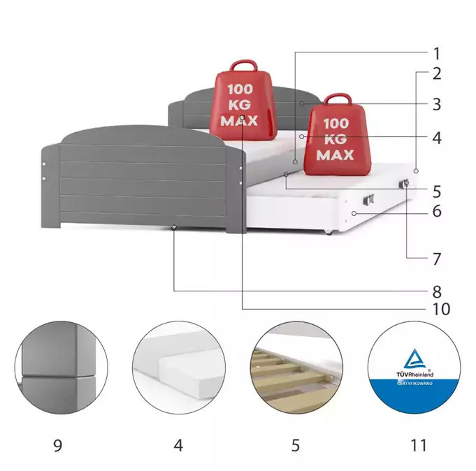 - Maximální zatížení postele je 100 kg