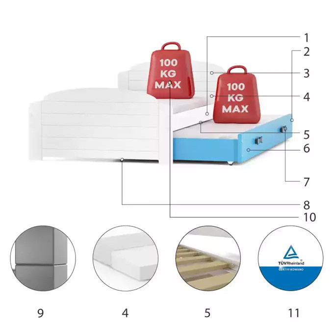 - Maximální zatížení postele je 100 kg
