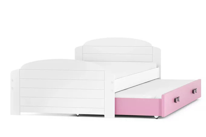 Dětská postel LILI s přistýlkou 90x200 cm, bez matrace, Bílá/Růžová