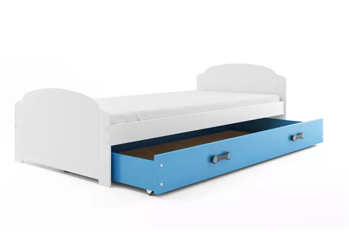 Dětská postel LILI 90x200 cm se šuplíkem, s matrací, Bílá/Modrá