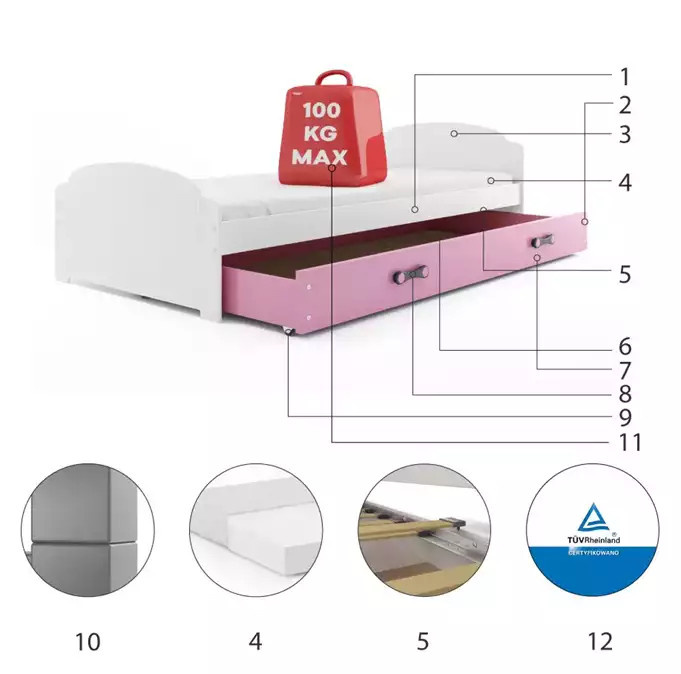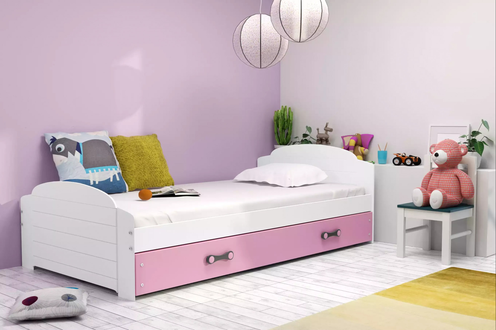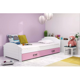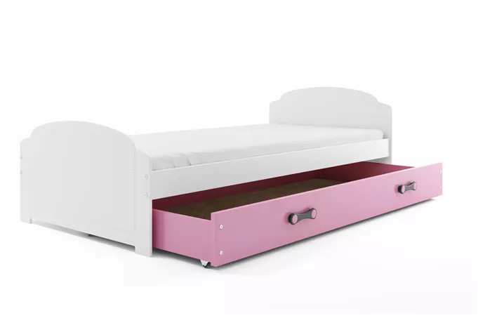 Dětská postel LILI 90x200 cm se šuplíkem, bez matrace, Bílá/Růžová