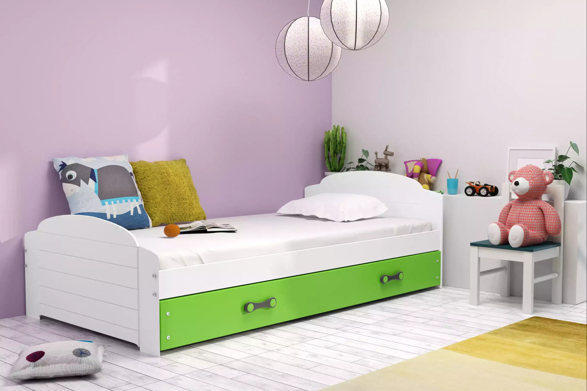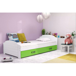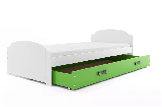 Dětská postel LILI 90x200 cm se šuplíkem, s matrací, Bílá/Zelená