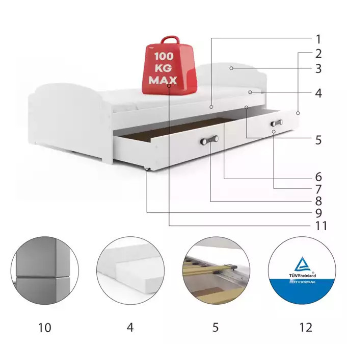 - Maximální zatížení postele je 100 kg