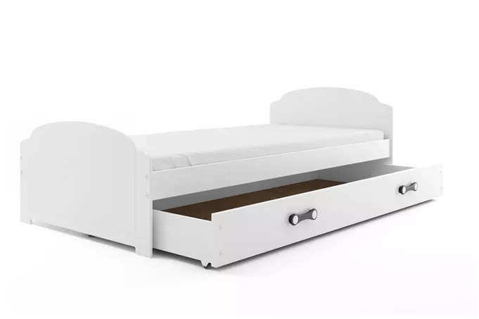 Dětská postel LILI 90x200 cm se šuplíkem, bez matrace, Bílá/Bílá
