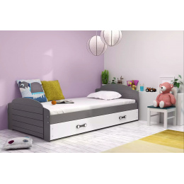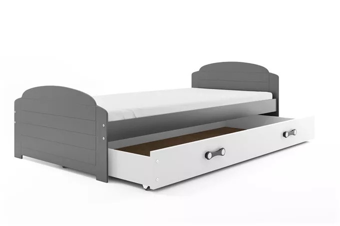 Dětská postel LILI 90x200 cm se šuplíkem, s matrací, Grafit/Bílá