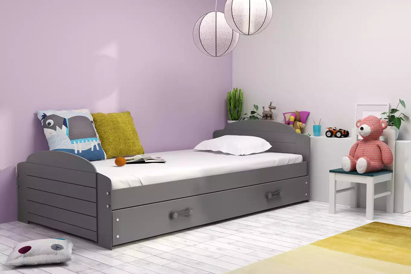 Dětská postel LILI 90x200 cm se šuplíkem, bez matrace, Grafit/Grafit