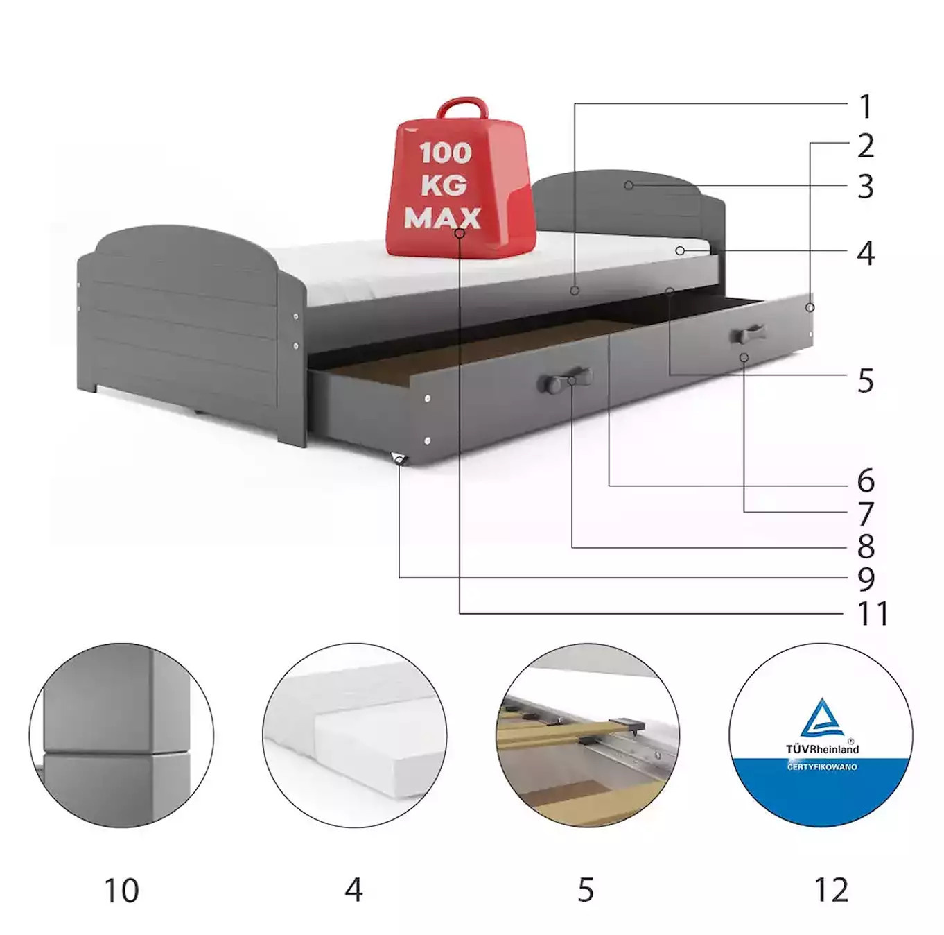 - Maximální zatížení postele je 100 kg