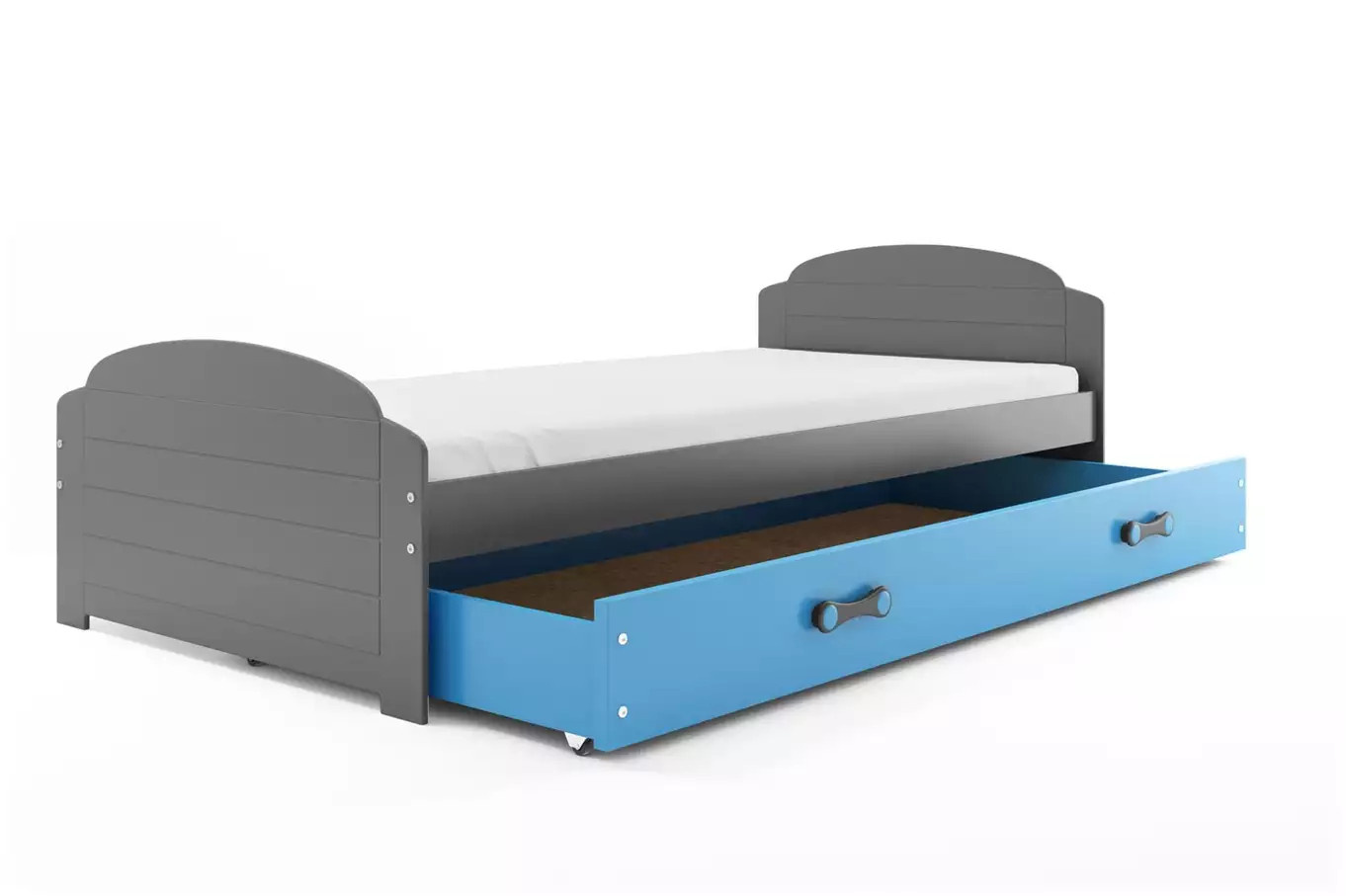Dětská postel LILI 90x200 cm se šuplíkem, bez matrace, Grafit/Modrá
