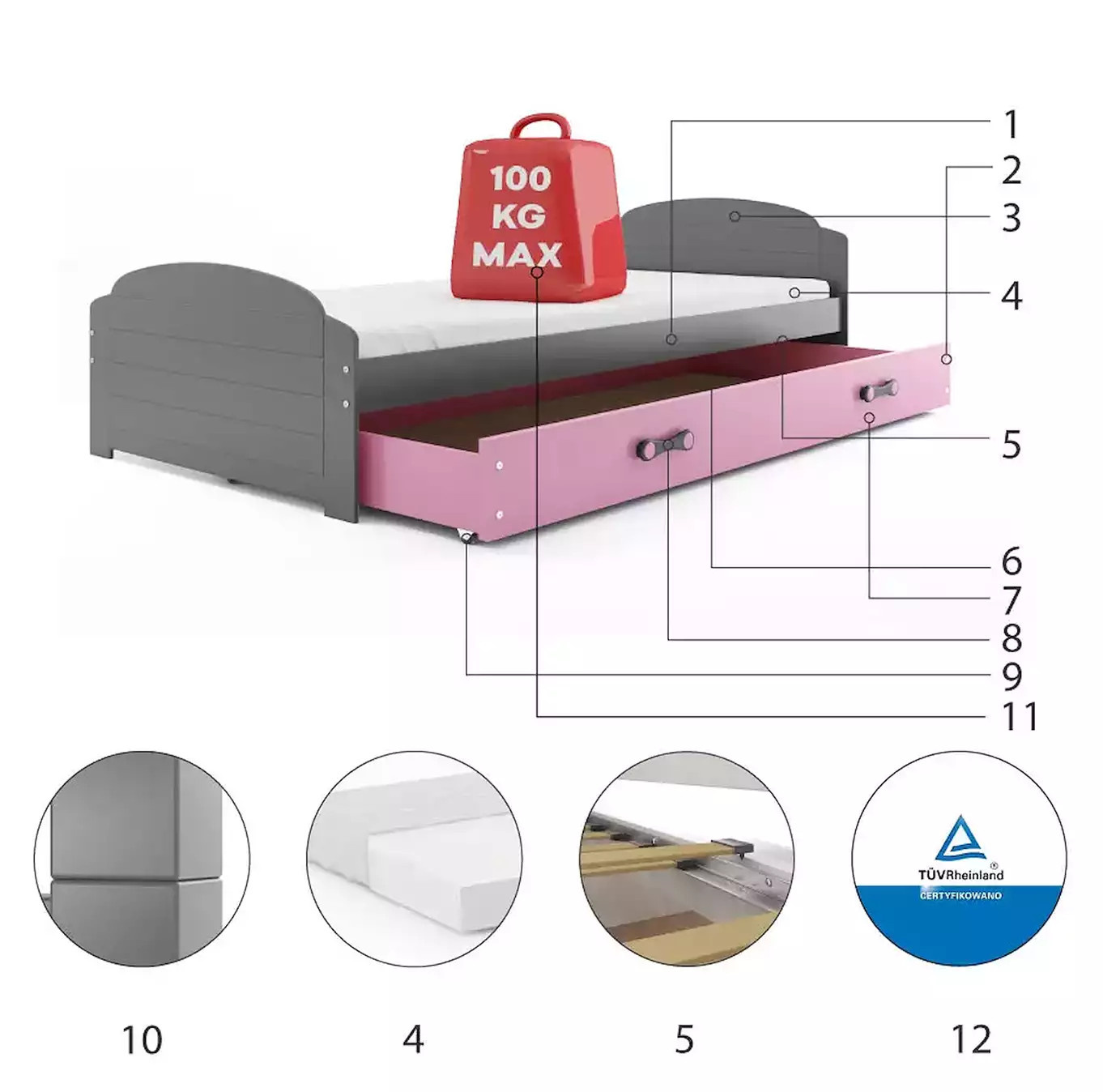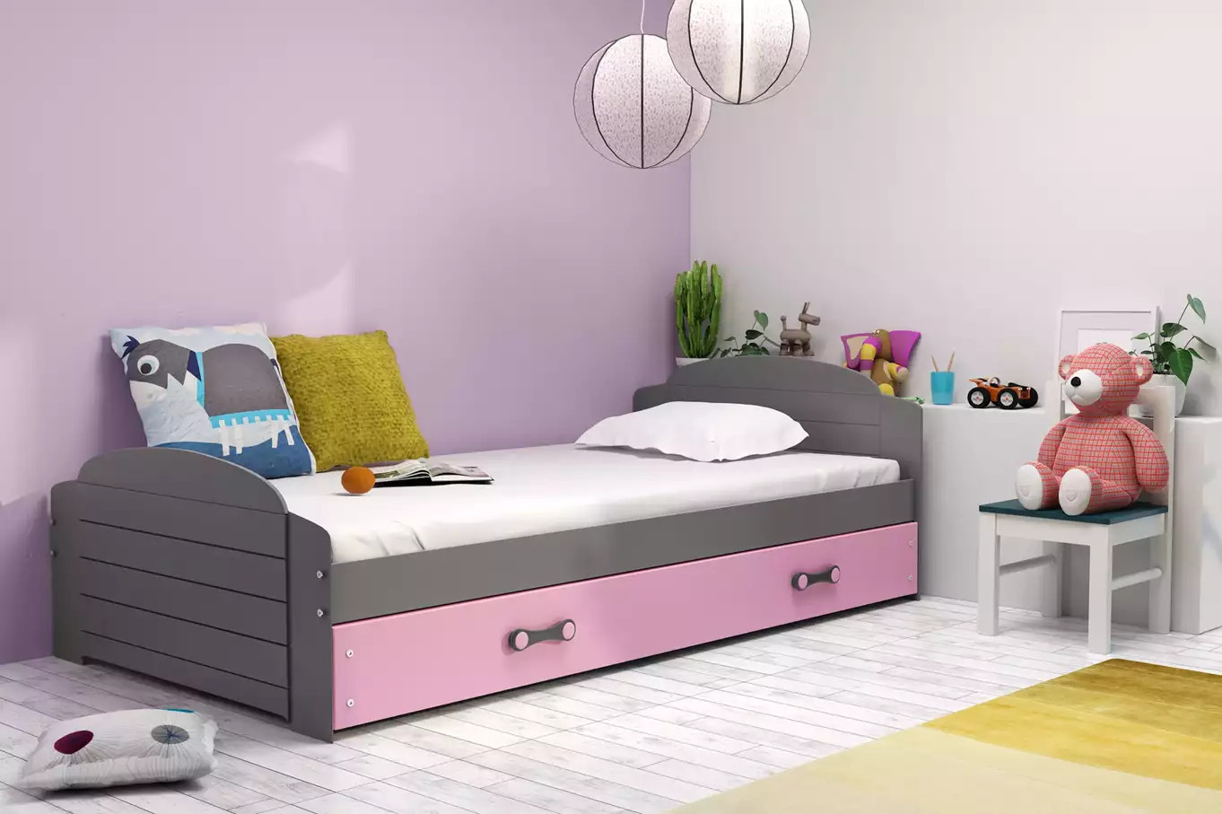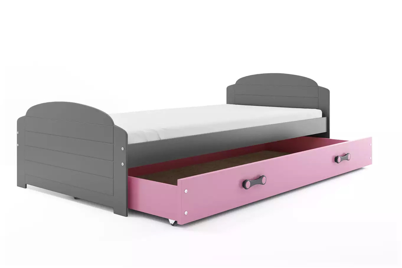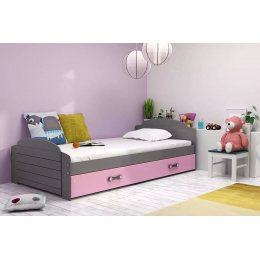 Dětská postel LILI 90x200 cm se šuplíkem, bez matrace, Grafit/Růžová