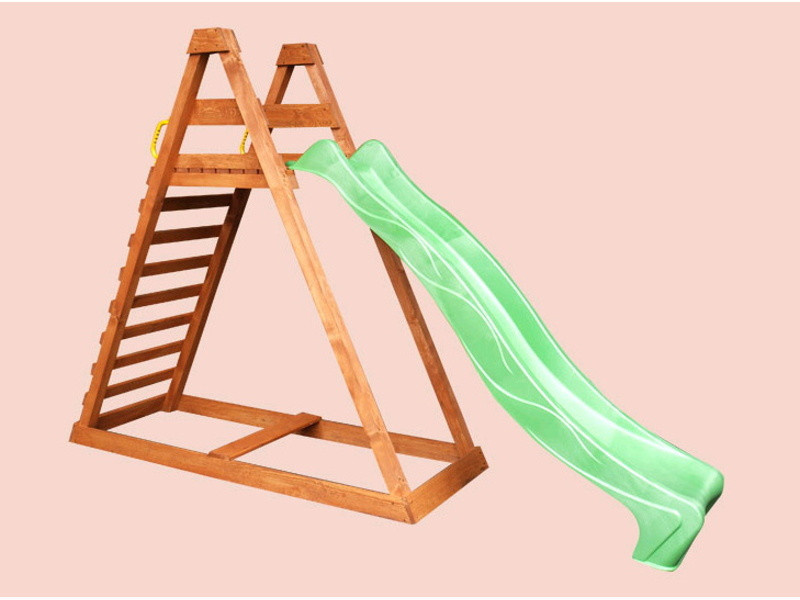 Dětská klouzačka z masívu s žebříkem. Používá na zahradách a dětských hřištích.