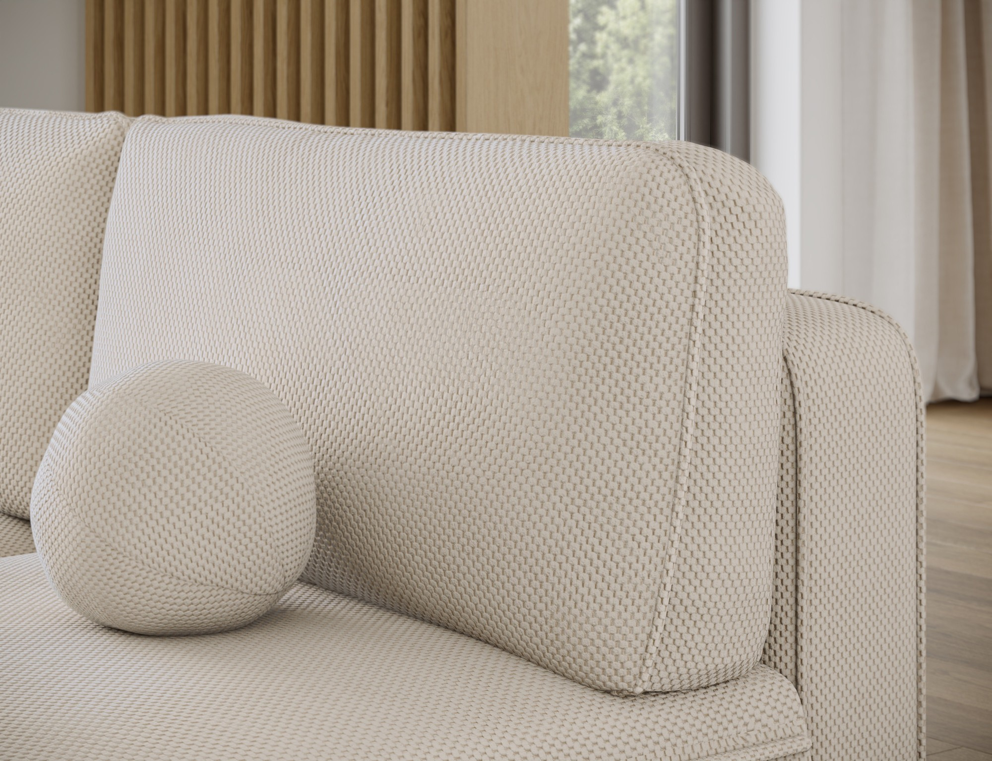 Další praktickou vlastností je úložný prostor, který je diskrétně integrován do konstrukce soupravy. Tento prostor je ideální pro uskladnění lůžkovin, polštářů nebo dalších předmětů, které chcete mít po ruce, ale zároveň je mít úhledně uklizené.