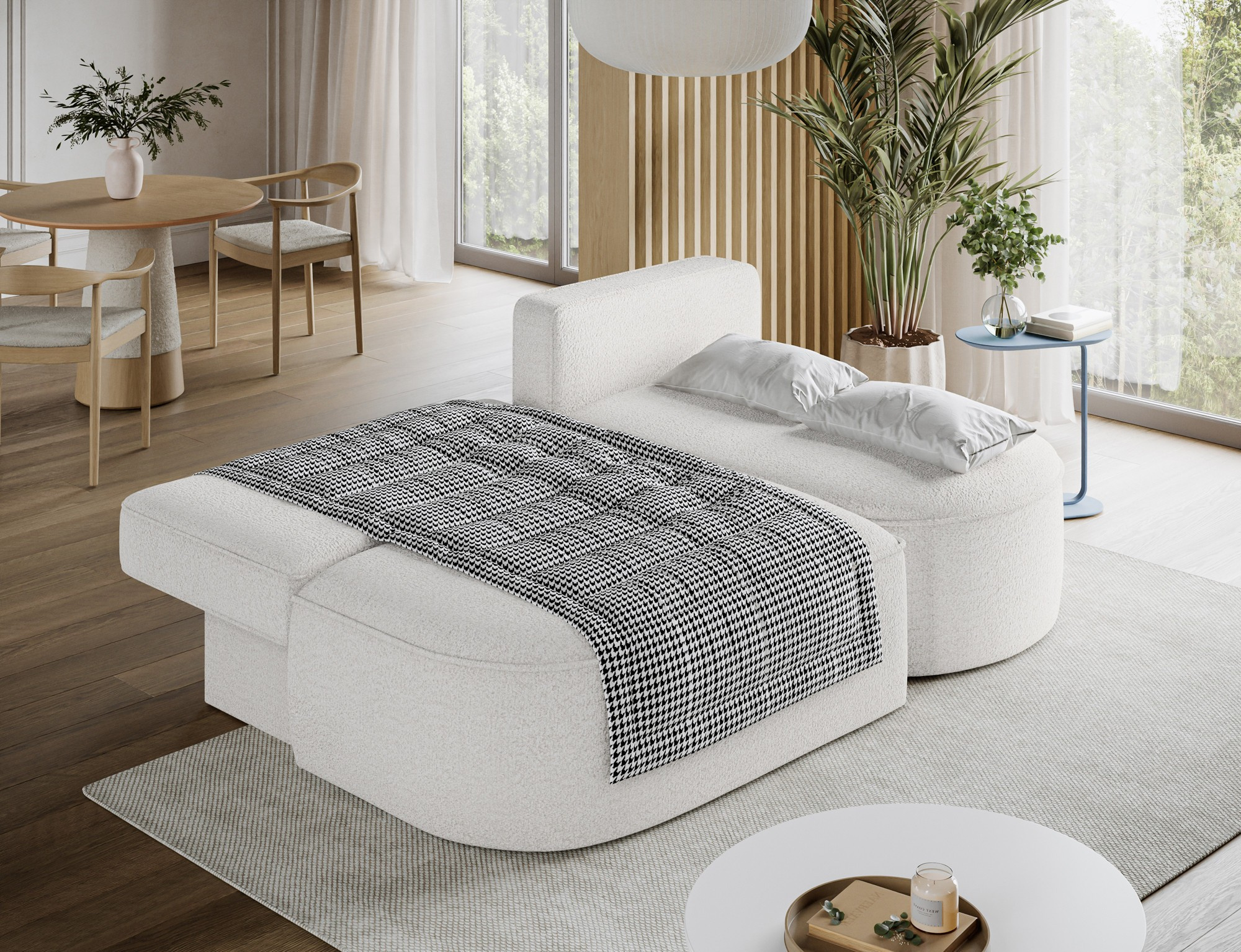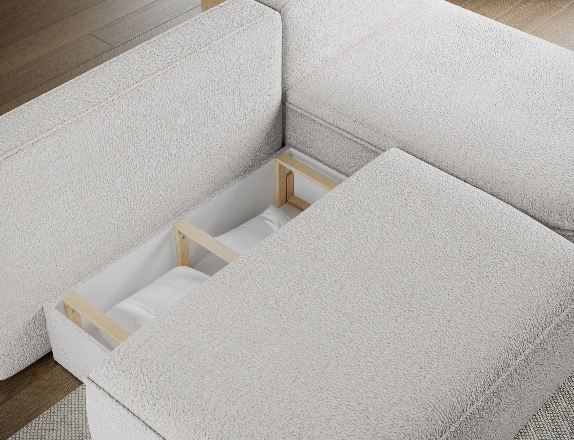 Další praktickou vlastností je úložný prostor, který je diskrétně integrován do konstrukce soupravy. Tento prostor je ideální pro uskladnění lůžkovin, polštářů nebo dalších předmětů, které chcete mít po ruce, ale zároveň je mít úhledně uklizené.