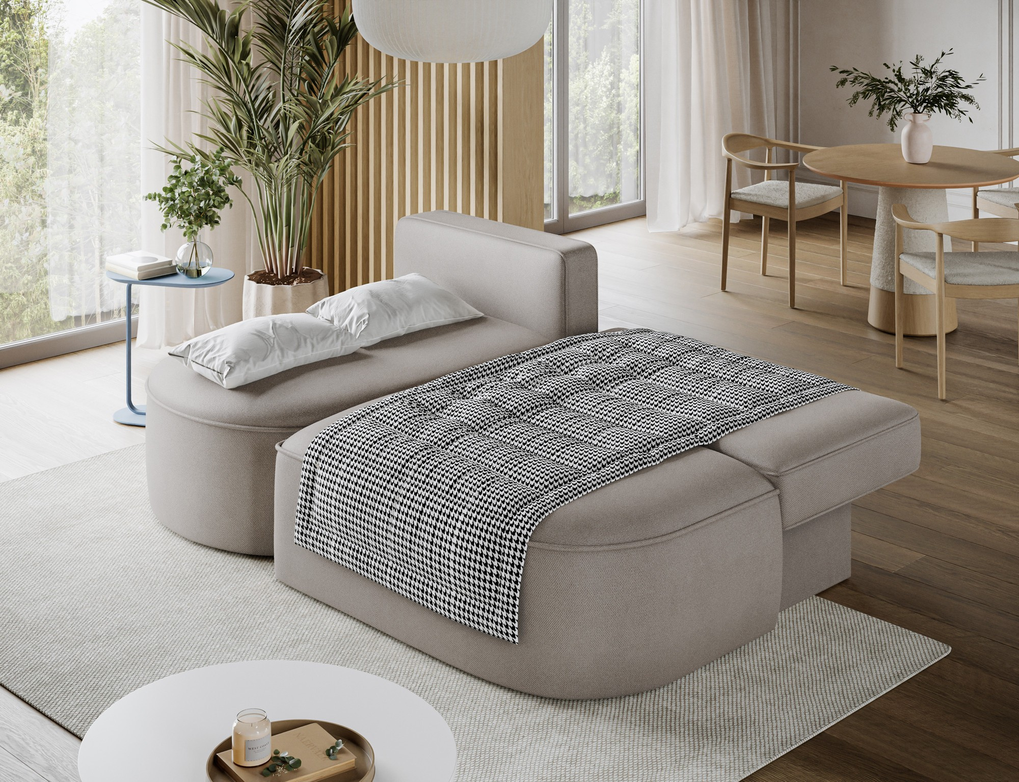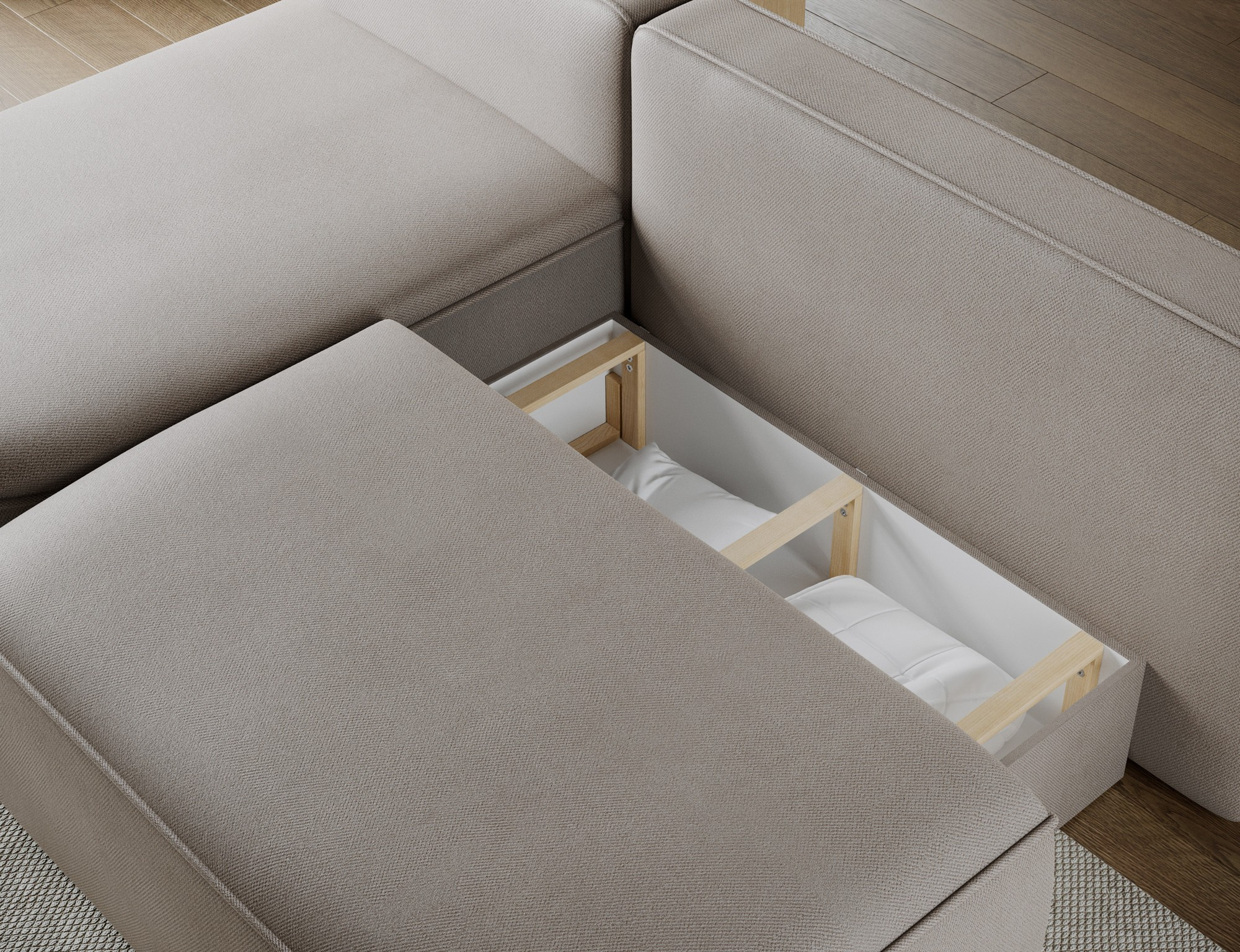 Další praktickou vlastností je úložný prostor, který je diskrétně integrován do konstrukce soupravy. Tento prostor je ideální pro uskladnění lůžkovin, polštářů nebo dalších předmětů, které chcete mít po ruce, ale zároveň je mít úhledně uklizené.