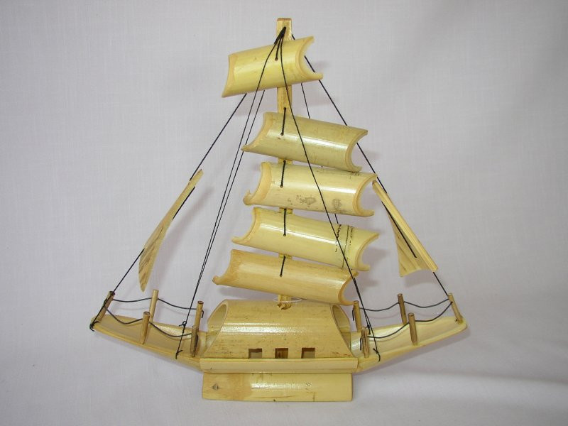 Ručně vyrobená loďka z přírodního bambusu. | Délka loďky je 30 cm. Výška loďky je 30 cm.
