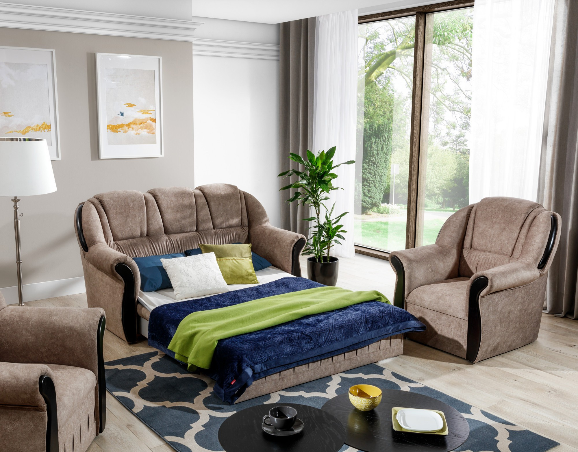 Pohovka Lord je elegantní kus nábytku v tradičním stylu, který kombinuje klasický design s pohodlím a funkčností. Díky svým kompaktním rozměrům 180x85x105 cm se perfektně hodí jak do malých, tak i velkých interiérů. Sedadlo, vyplněné vlnovou pružinou typu A a pěnou T3030, zajišťuje odolnost a pohodlí, zatímco opěradlo s pěnou T2130 a T2540 poskytuje správnou oporu pro záda. Další výhodou pohovky je její funkce spaní, která umožňuje rychlou přeměnu na pohodlný prostor pro odpočinek, a také úložný prostor na lůžkoviny pro snadnou organizaci nezbytností. Čalouněné opěradlo umožňuje umístění kdekoli v obývacím pokoji, zatímco 2.5 cm černé kluzáky zajišťují stabilitu a chrání podlahu. Jeho klasický design, precizní řemeslné zpracování a vysoce kvalitní materiály činí pohovku Lord ideální volbou pro elegantní interiéry, které kombinují nadčasový styl s funkčností.